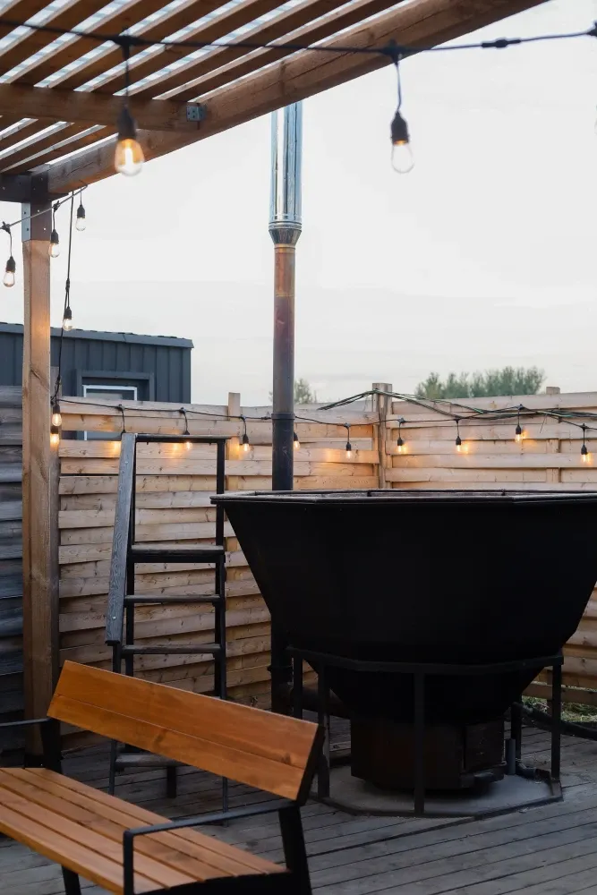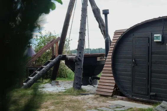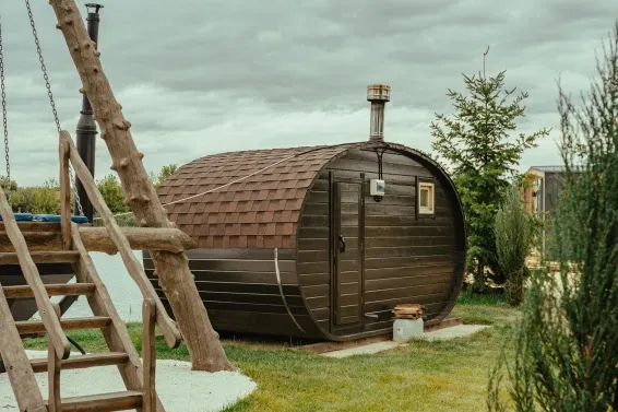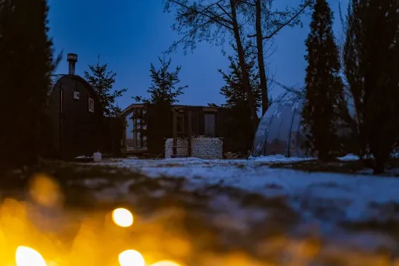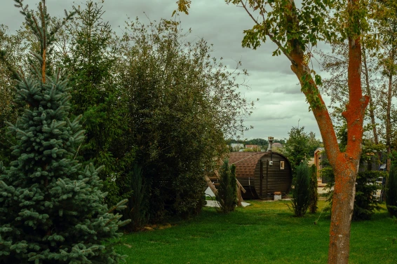 Баня дубовая / еловая с чаномУютный банный домик с чаном. Здесь царит атмосфера уюта и расслабления. Гостей ждет возможность насладиться теплом и ароматом парной, после чего окунуться в чан с теплой водой и почувствовать себя как в настоящем SPA.
