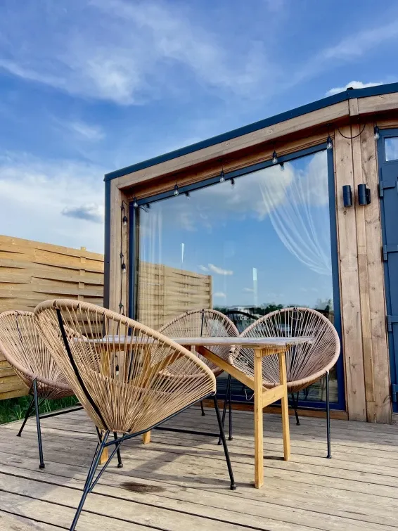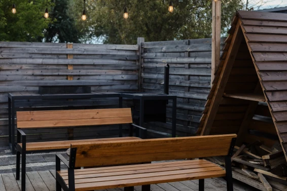 Все домики на территории базы оснащены террасой, комфортной мебелью с возможностью круглосуточного пребывания для двух гостей, душевыми и отдельной мангальной зоной.