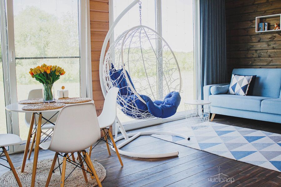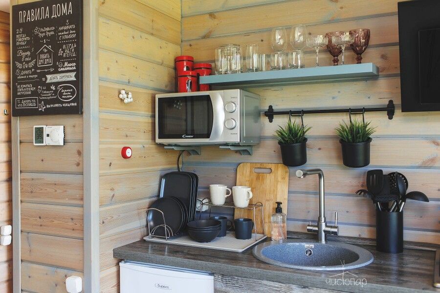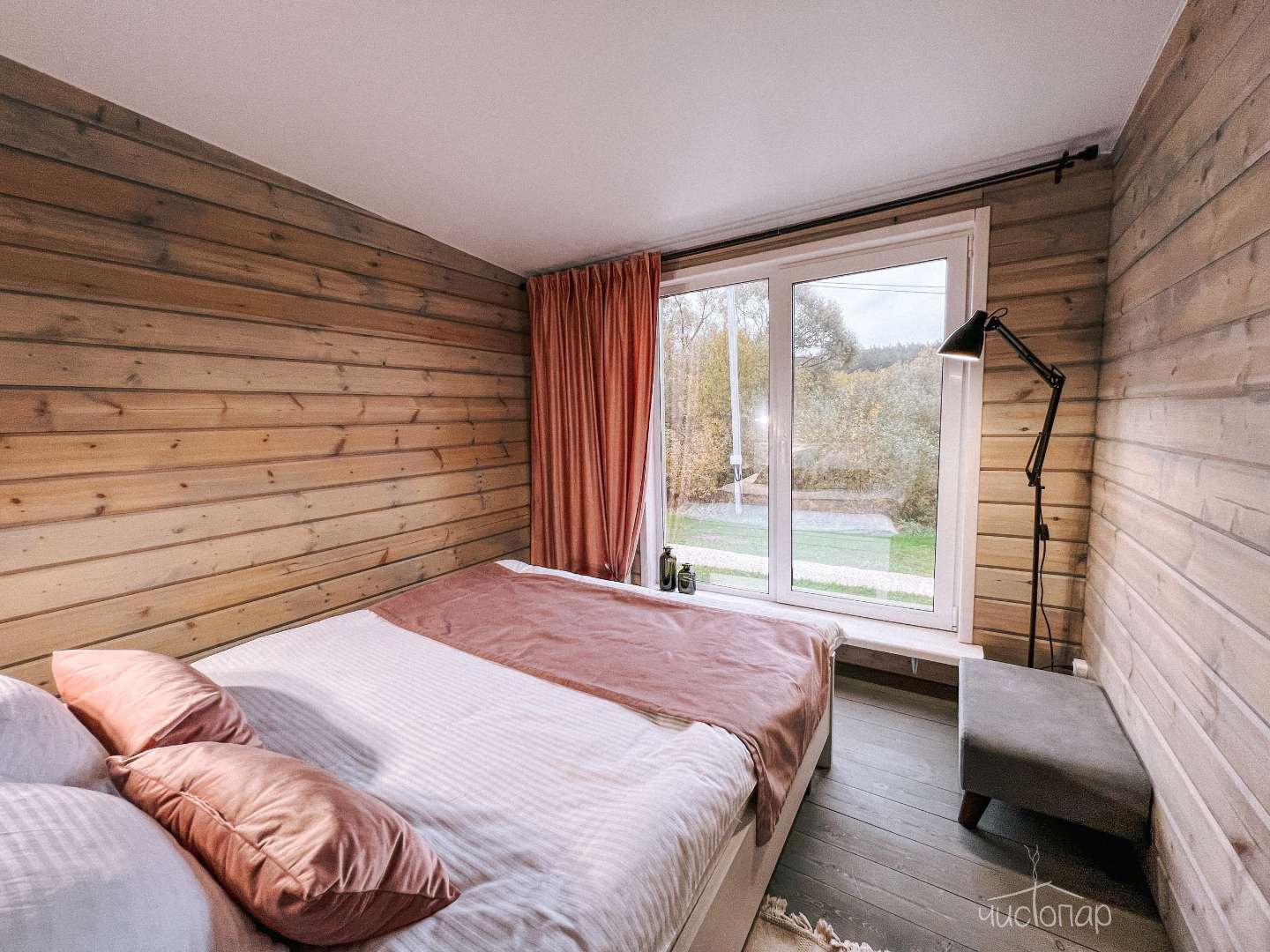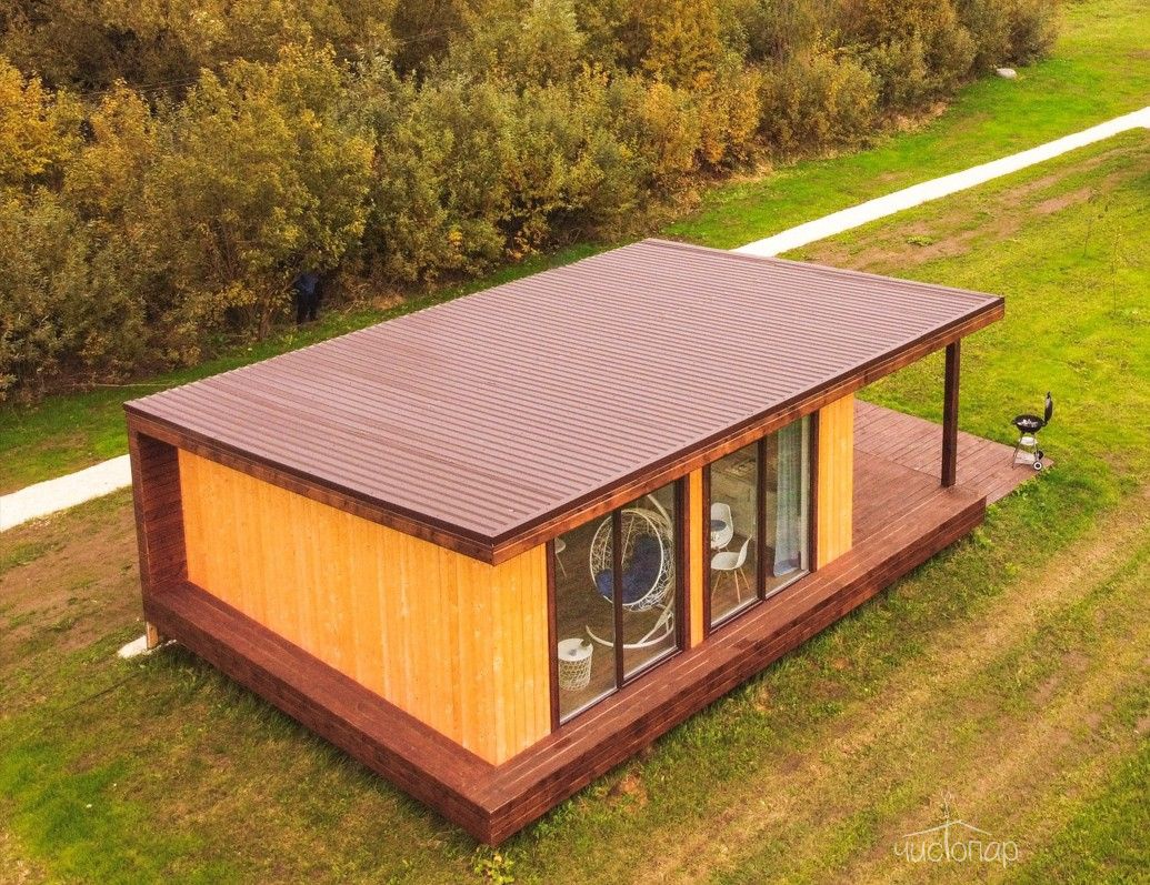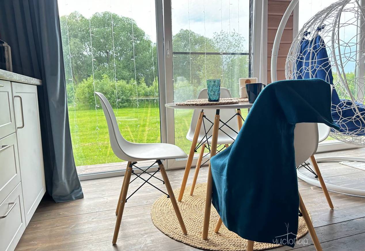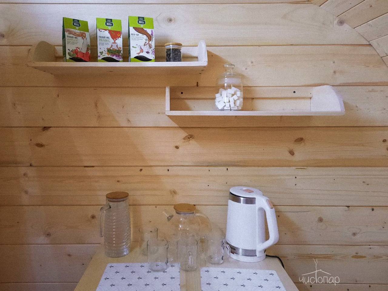 Для проживания предоставлены 4 домика с панорамными окнами, площадью 50 кв.м каждый. Каждый домик имеет спальню, кухню-гостиную, ванную комнату, прихожую и крытую веранду, что позволяет разместить до 4 человек.