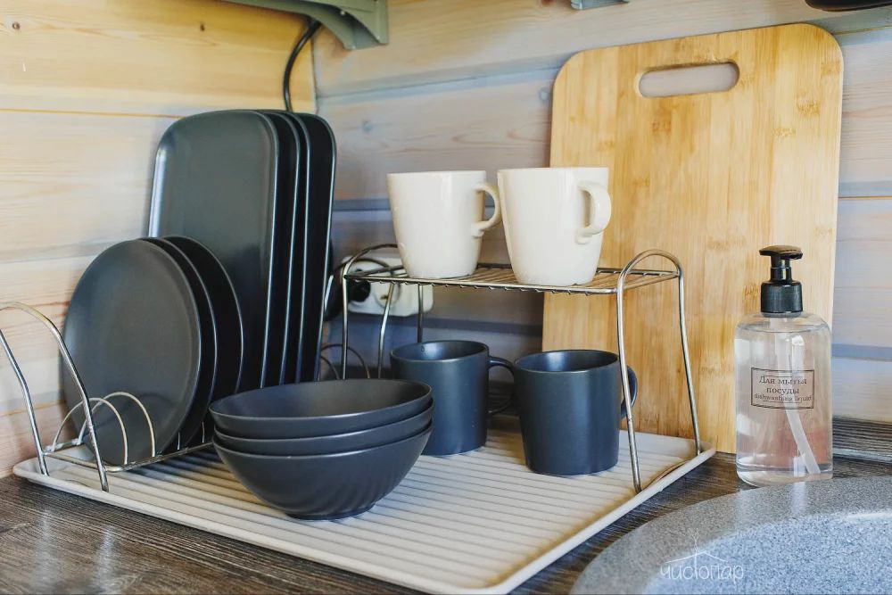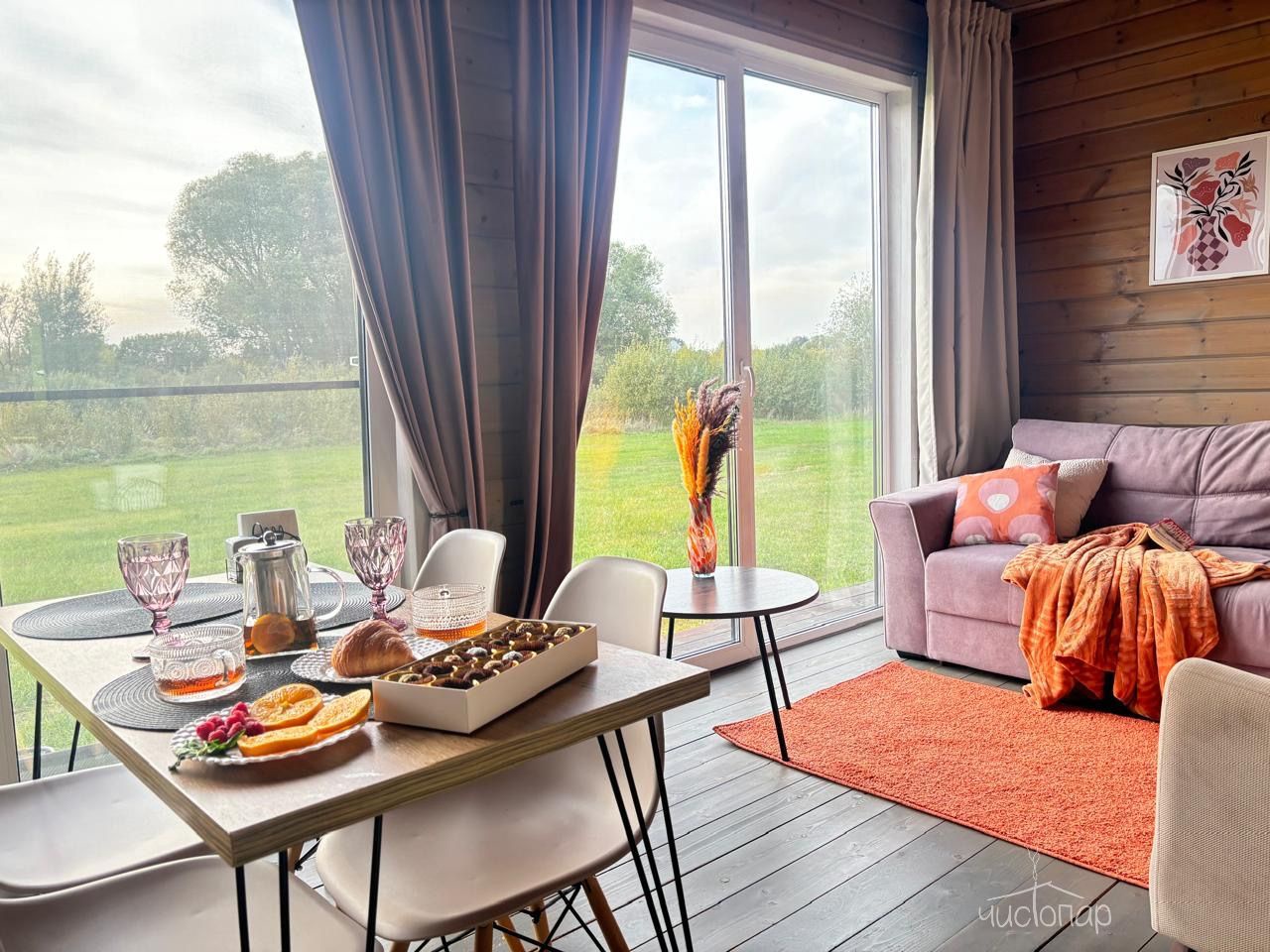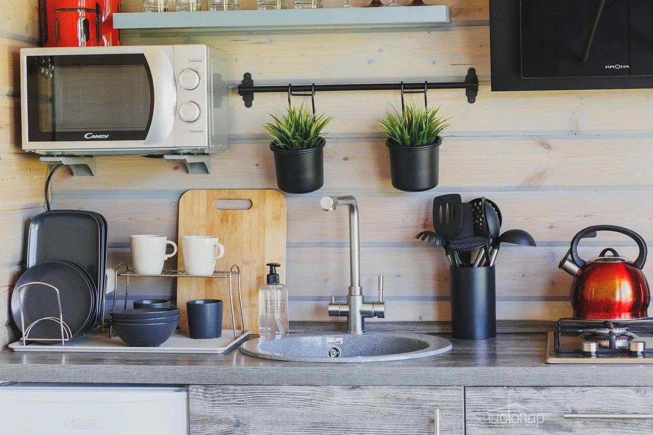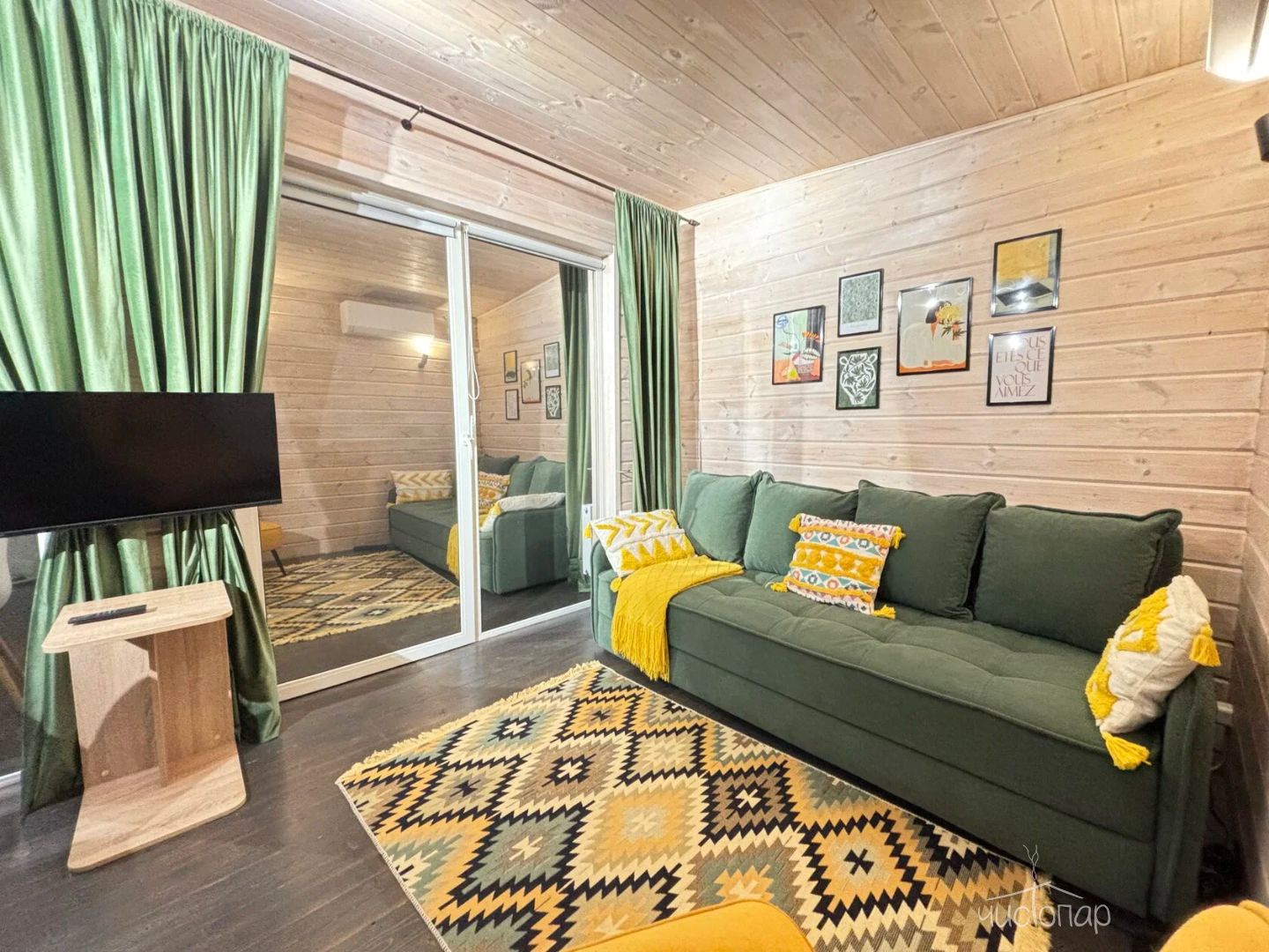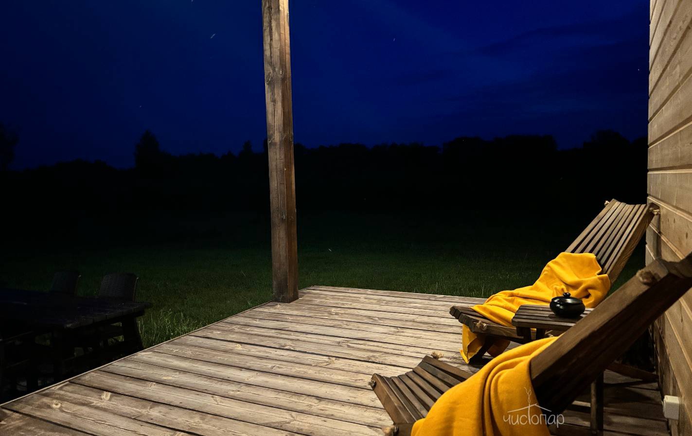 Для проживания предоставлены 4 домика с панорамными окнами, площадью 50 кв.м каждый. Каждый домик имеет спальню, кухню-гостиную, ванную комнату, прихожую и крытую веранду, что позволяет разместить до 4 человек.