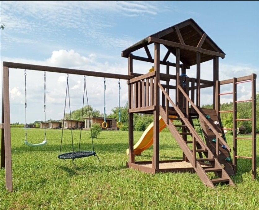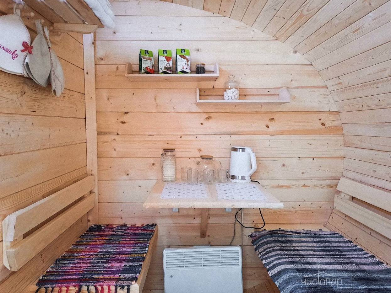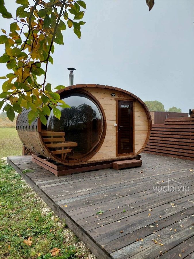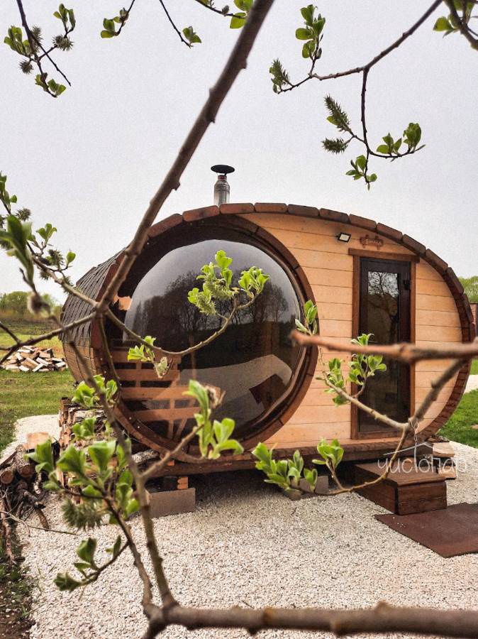 На территории эко-фермы есть зона релакса с русской дровяной баней и купелью, бодряще холодной или расслабляюще горячей. Баня с панорамным окном. Предоставляются эфирные масла, разные виды чая и домашнее варенье. Большая купель и обливное ведро с ледяной водой.