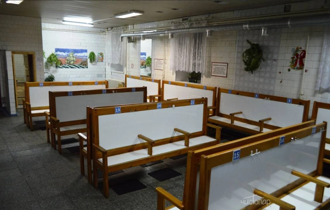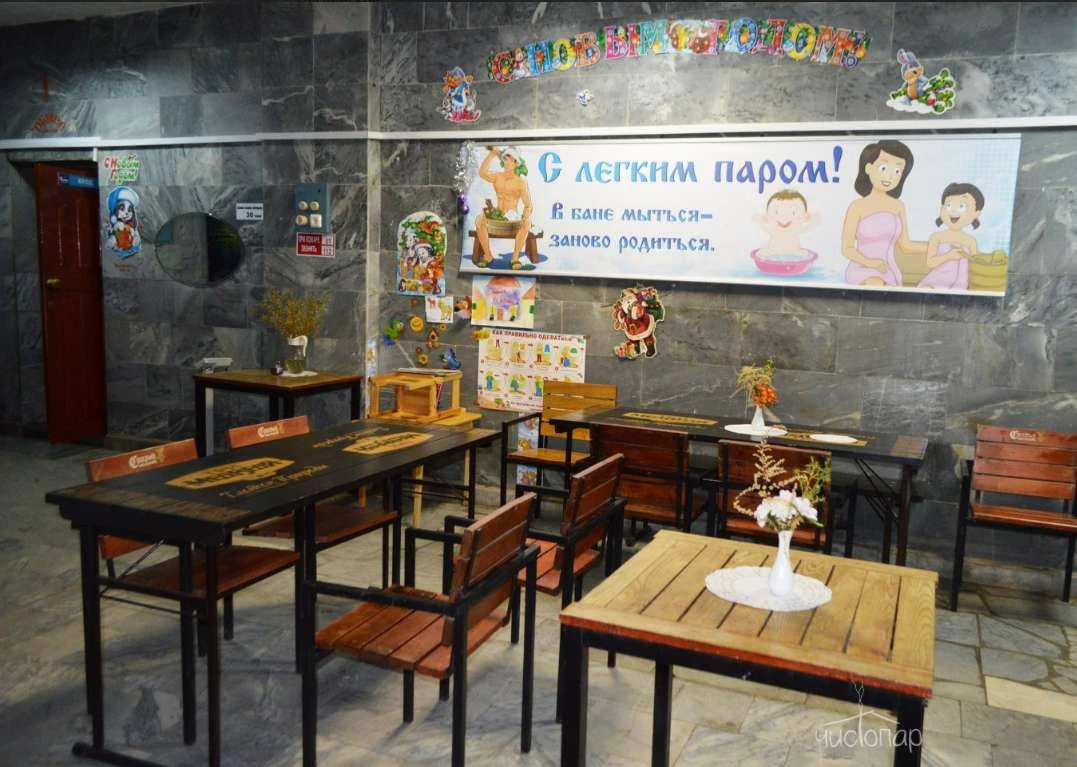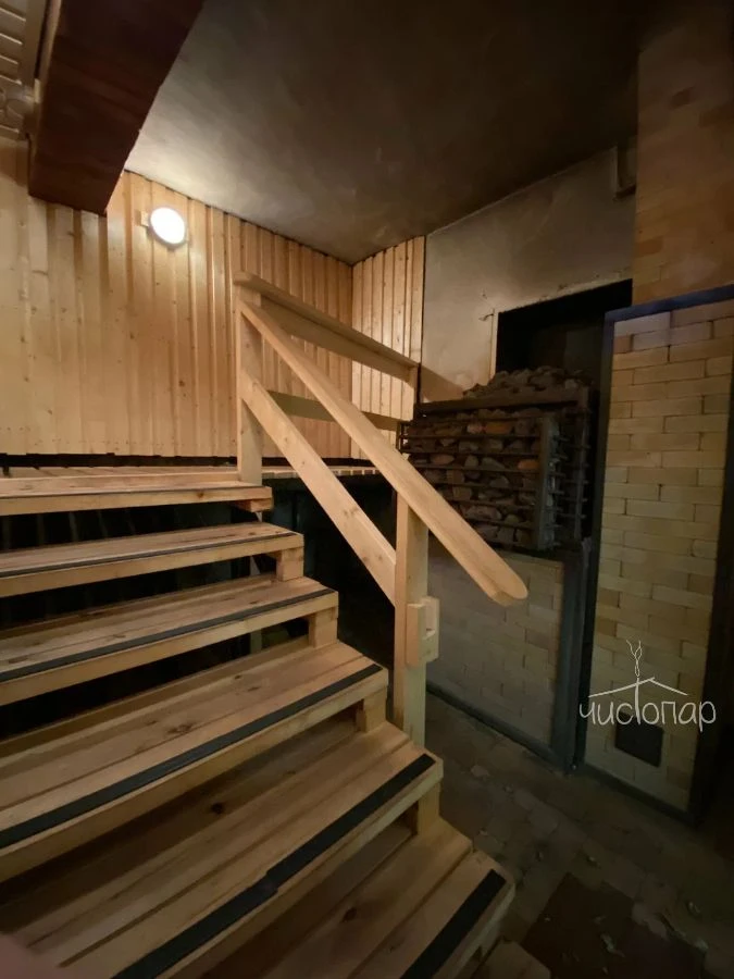 Пар здесь «готовят» традиционно — в русской парной, на дровах. Высокая температура, деревянное убранство и продуманная система вентиляции.