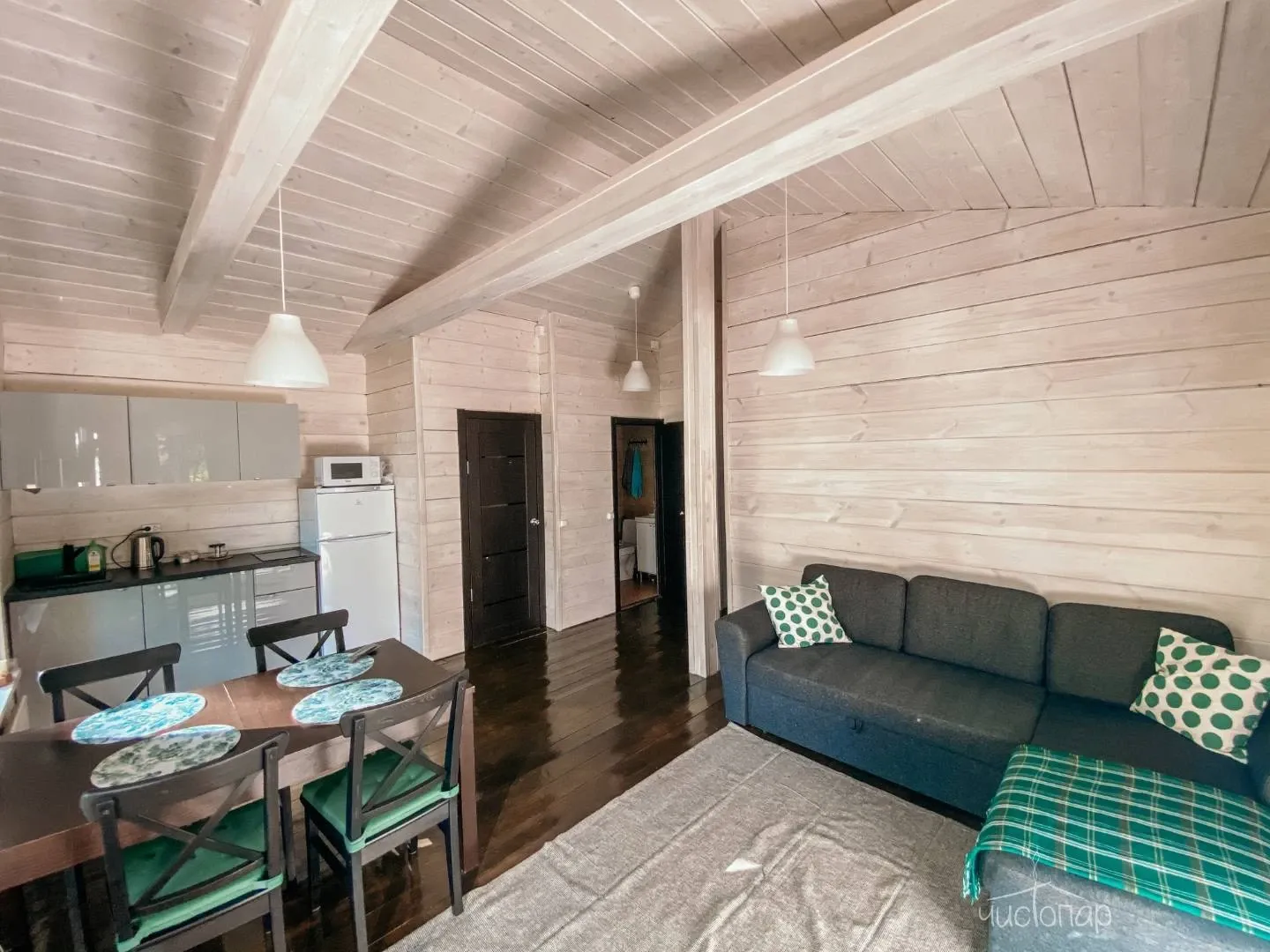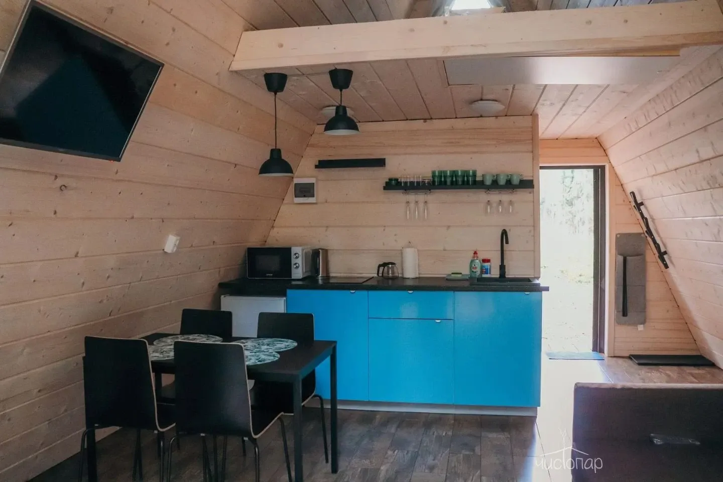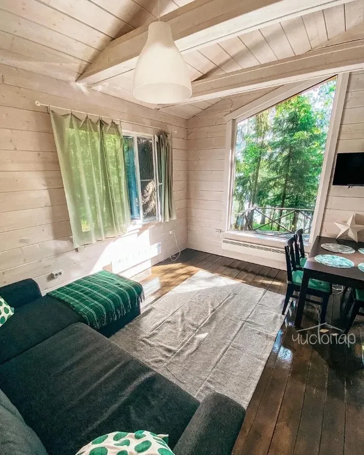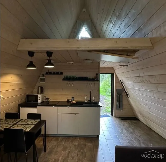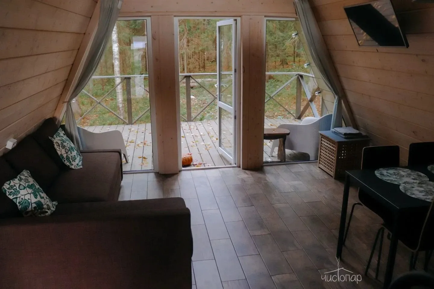Для проживания предоставляются новые теплые А-образные домики, оснащенные всем необходимым для комфортного проживания — мебелью IKEA и современной техникой. В каждом доме имеется терраса с грилем, душ, теплые полы и удобные кровати.
