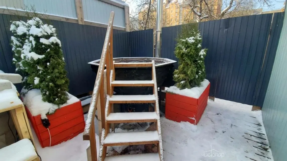 - Уличный банный чан, в котором приятно проводить время под открытым небом
