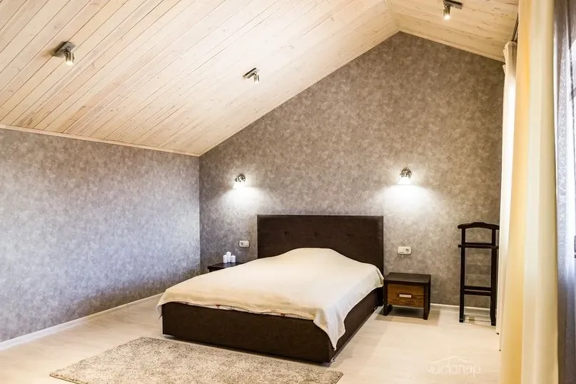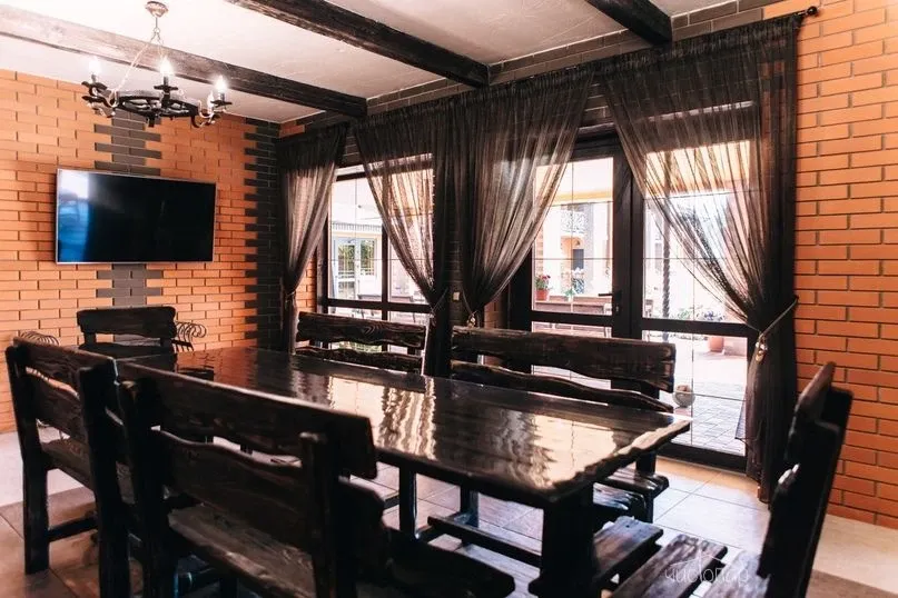 В отеле комплекса можно комфортно разместиться в отдельных двухэтажных апартаментах, оформленных по последним тенденциям в мире дизайна интерьеров: плавность линий, мягкость тонов, спокойные натуральные оттенки, много света и воздуха. Банкетный зал позволяет разместить до 25 человек.