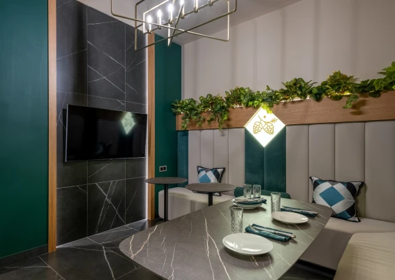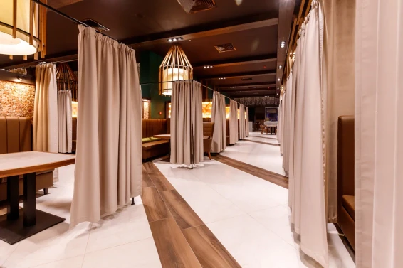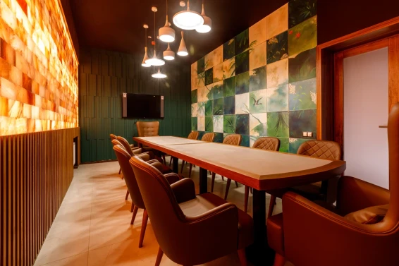 Кроме того, гости могут насладиться вкусной едой и напитками в ресторане комплекса.