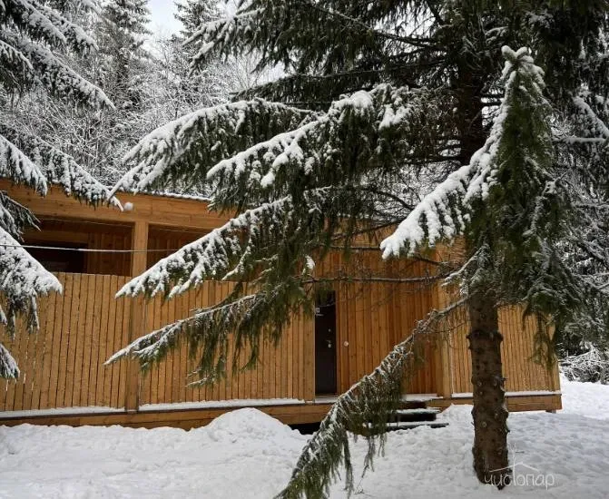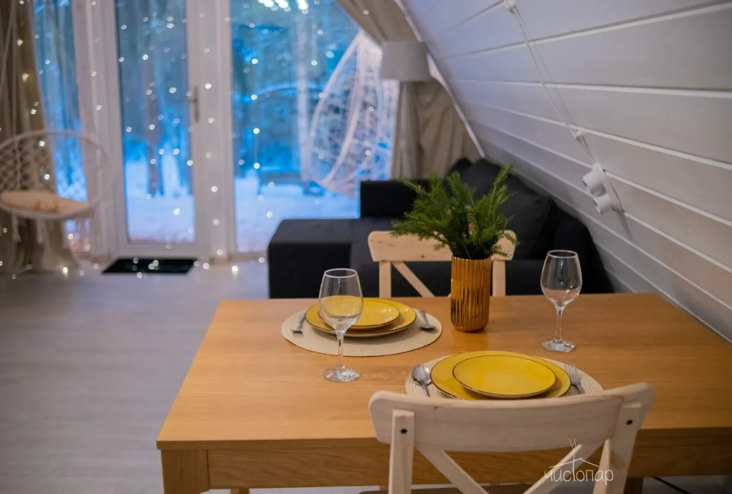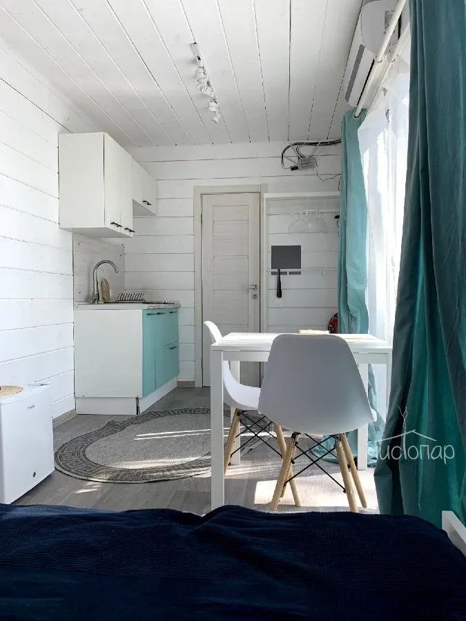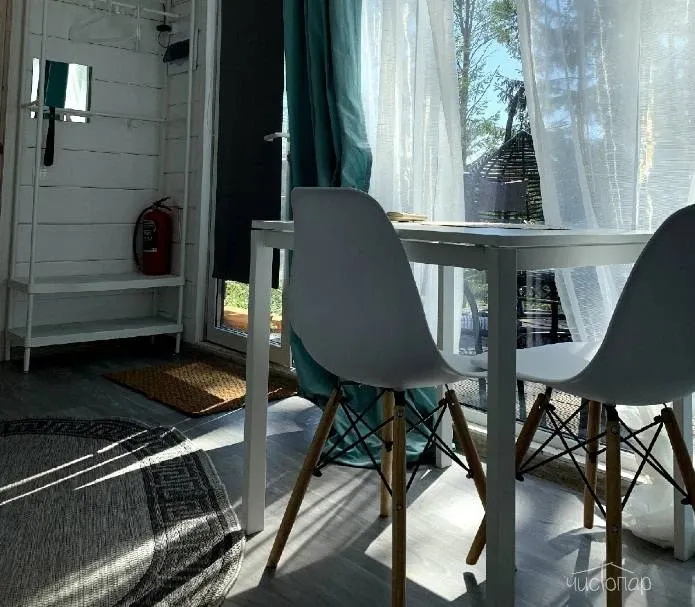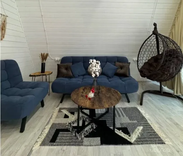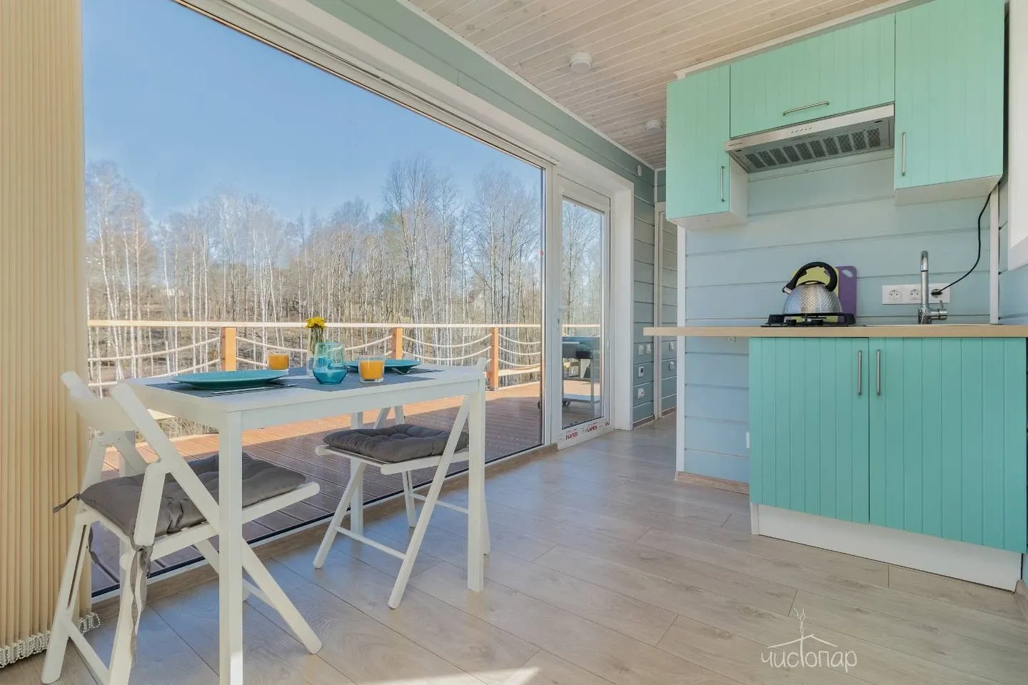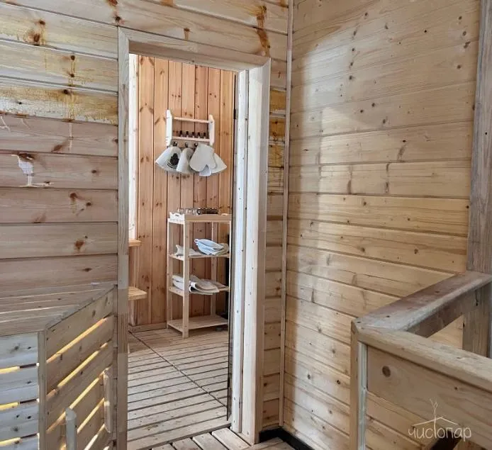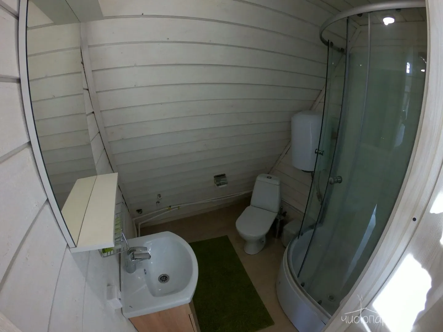 Внутри коттеджей есть все необходимое для комфортного проживания: душевая комната, туалет, горячая и холодная вода, подогреваемые полы, полностью оборудованная кухня с посудой, плитой, холодильником, чайником, доступом к Wi-Fi, телевизором, а также терраса с мангалом и зоной отдыха.