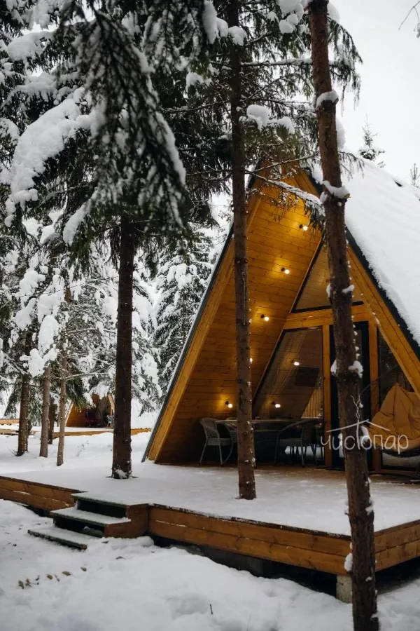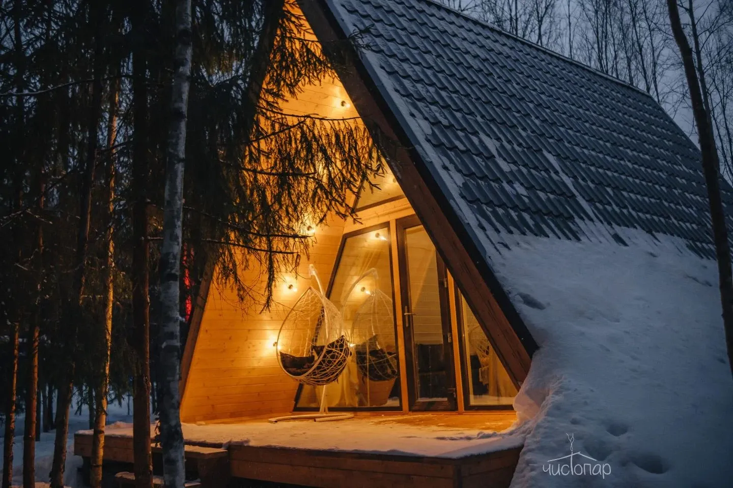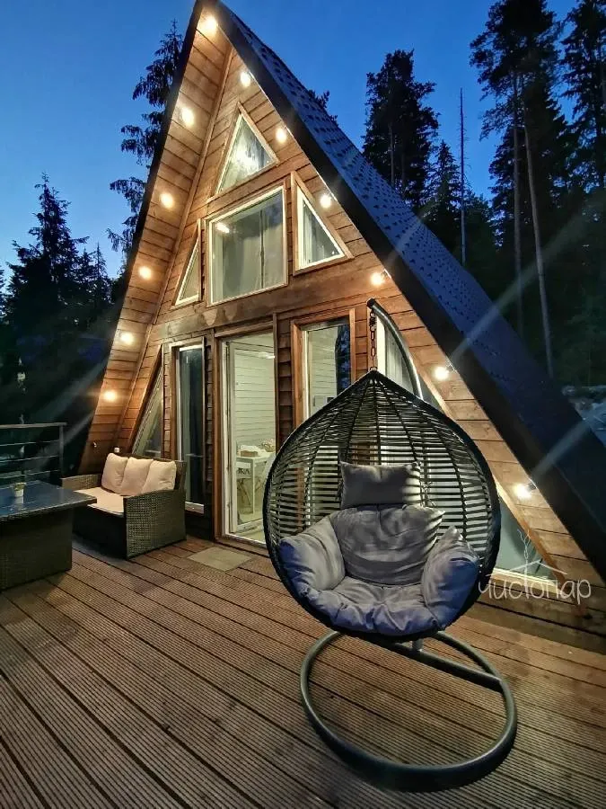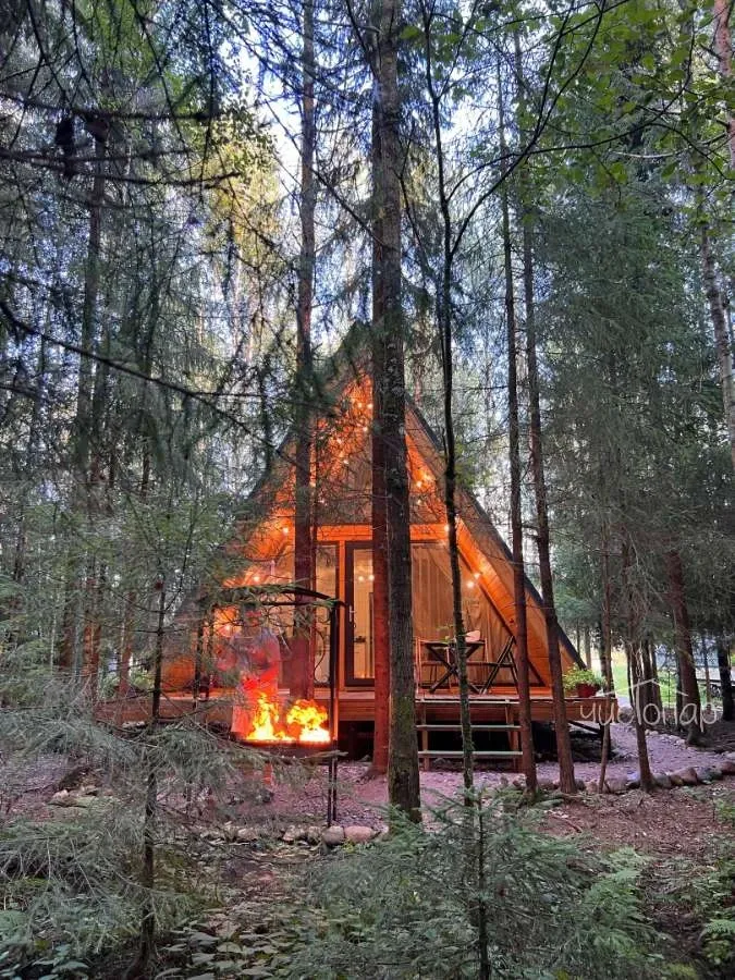 — Маленький коттедж «А-фрейм» на два-четыре человека;