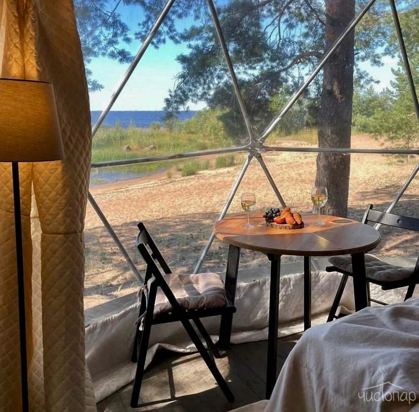 • Из всех геокуполов открывается; потрясающий панорамный вид на озеро;
