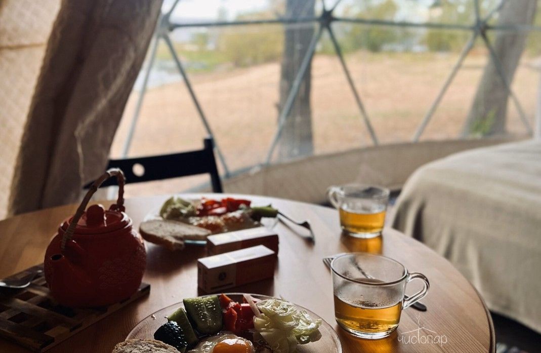 • У каждого геокупола установлен стол и мангал с решетками. Вам не нужно вести их с собой.