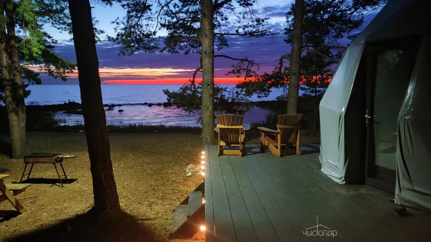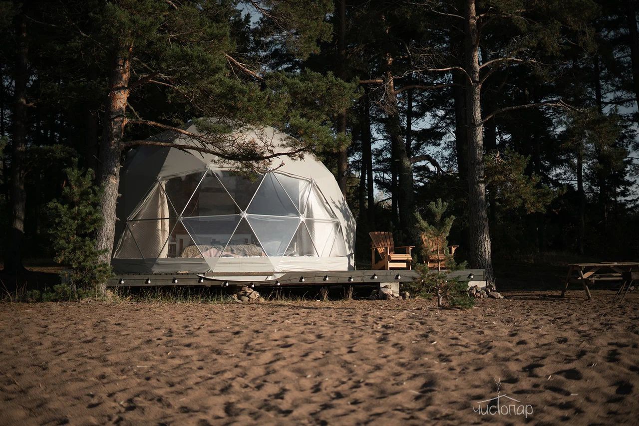 Все геокупола расположены на первой линии с непревзойденным видом на озеро. Маленькая бухта защищает береговую линию от приливов. Чтобы обеспечить для гостей комфорт, в глэмпинге Веззика есть множество уютных зон для разведения костра и крытая беседка, защищенная от погодных условий.