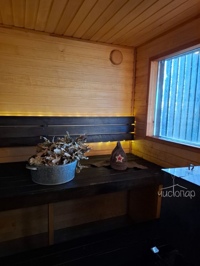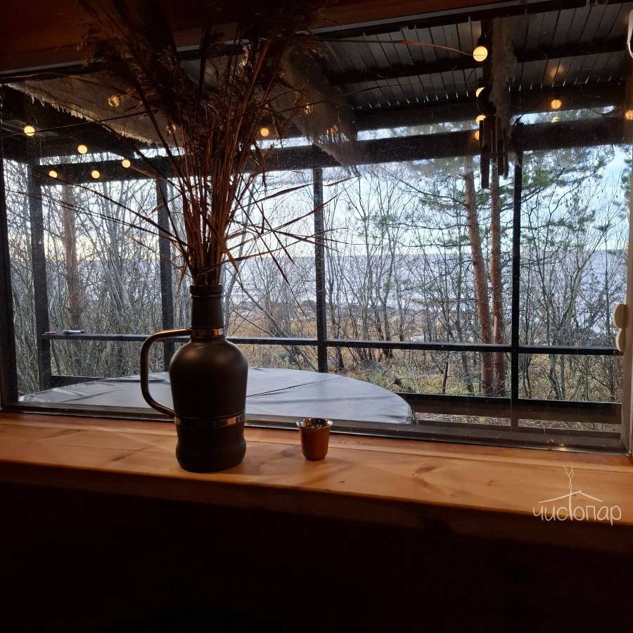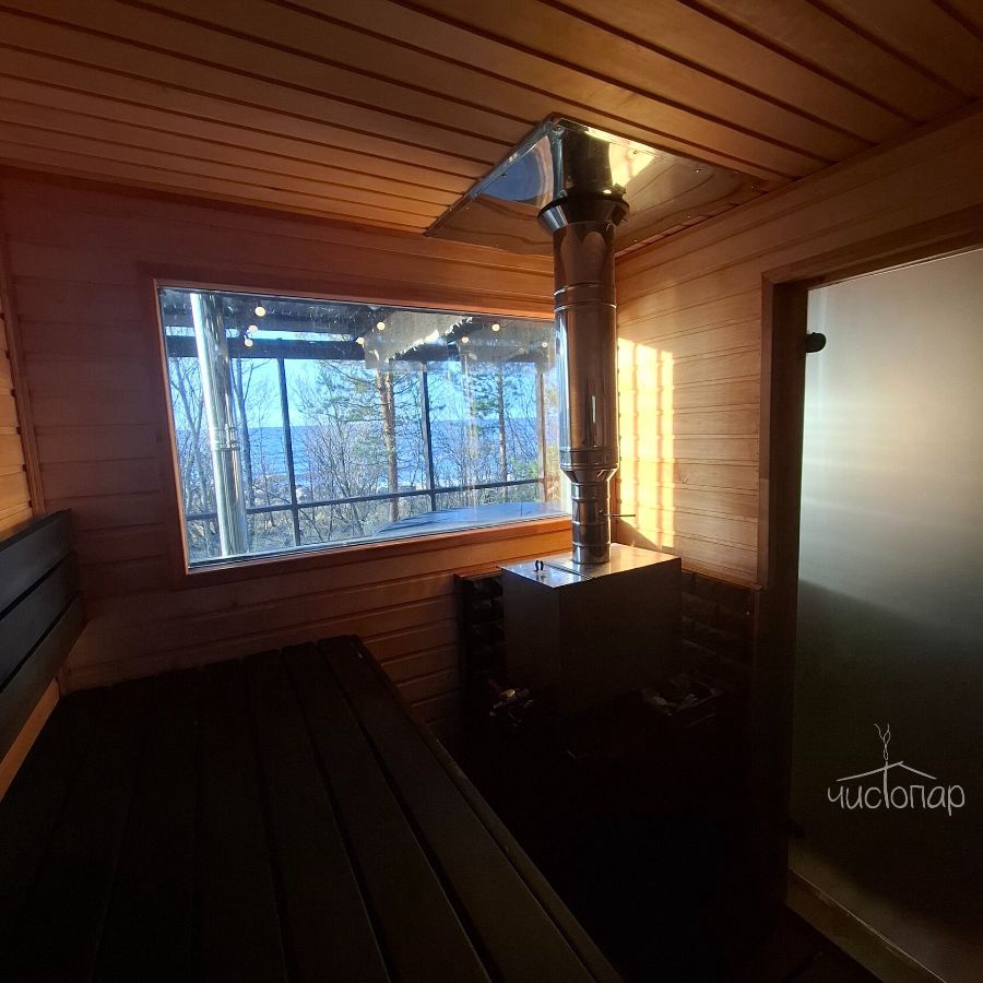 Паровая баняПаровая баня с панорамным видом на озеро и бухту. Температурный режим - 60°С и 70% влажности.