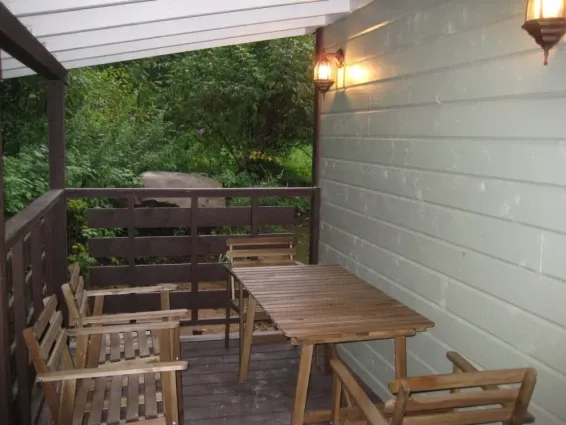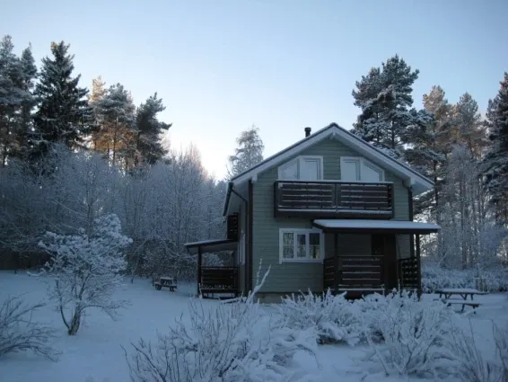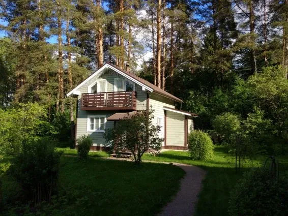 Коттедж 4+2 с саунойОтдельный коттедж рядом с озером. Дом выполнен в скандинавском стиле из бруса с хорошим утеплением - 80 м2, двухкамерные стеклопакеты, балкон, большая крытая веранда с мебелью ,теплый пол на первом этаже. Постельное белье, полотенца, хоз. принадлежности, гель для душа, шампунь - в комплекте.
