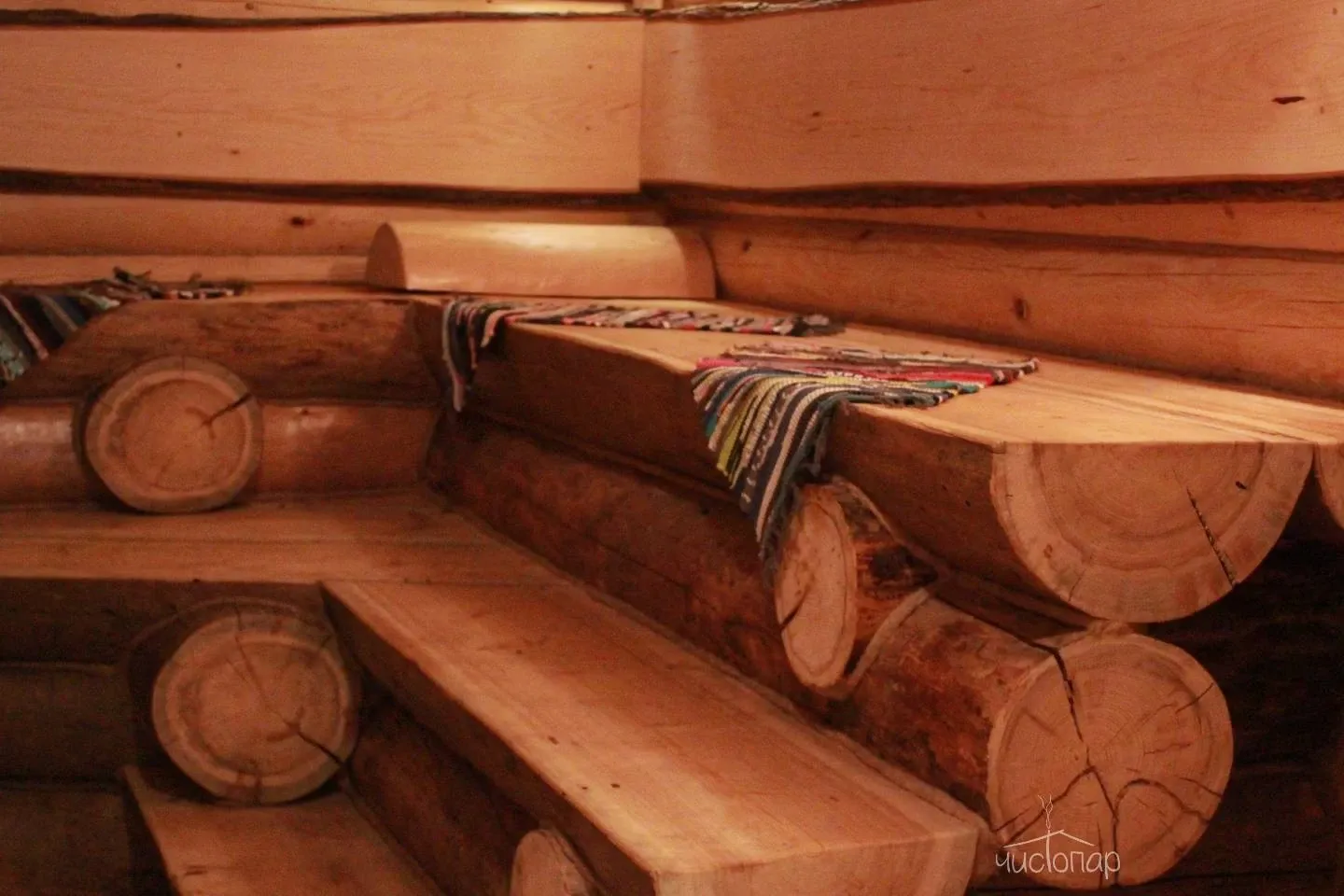 Наша гордость – 2 банные избы с русской баней на дровах. В распоряжении гостей — гостиная с камином, комната отдыха, сеновал и банный чан на костре под открытым небом. Чан запаривается на дубовых и пихтовых вениках с добавлением целебных трав.