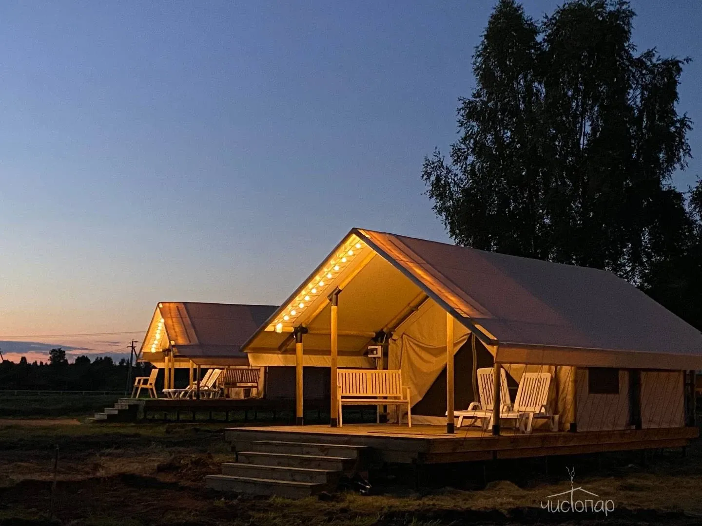 18 шатров и домов глэмпинга бережно и органично вписаны в природный ландшафт Пушкинских гор.