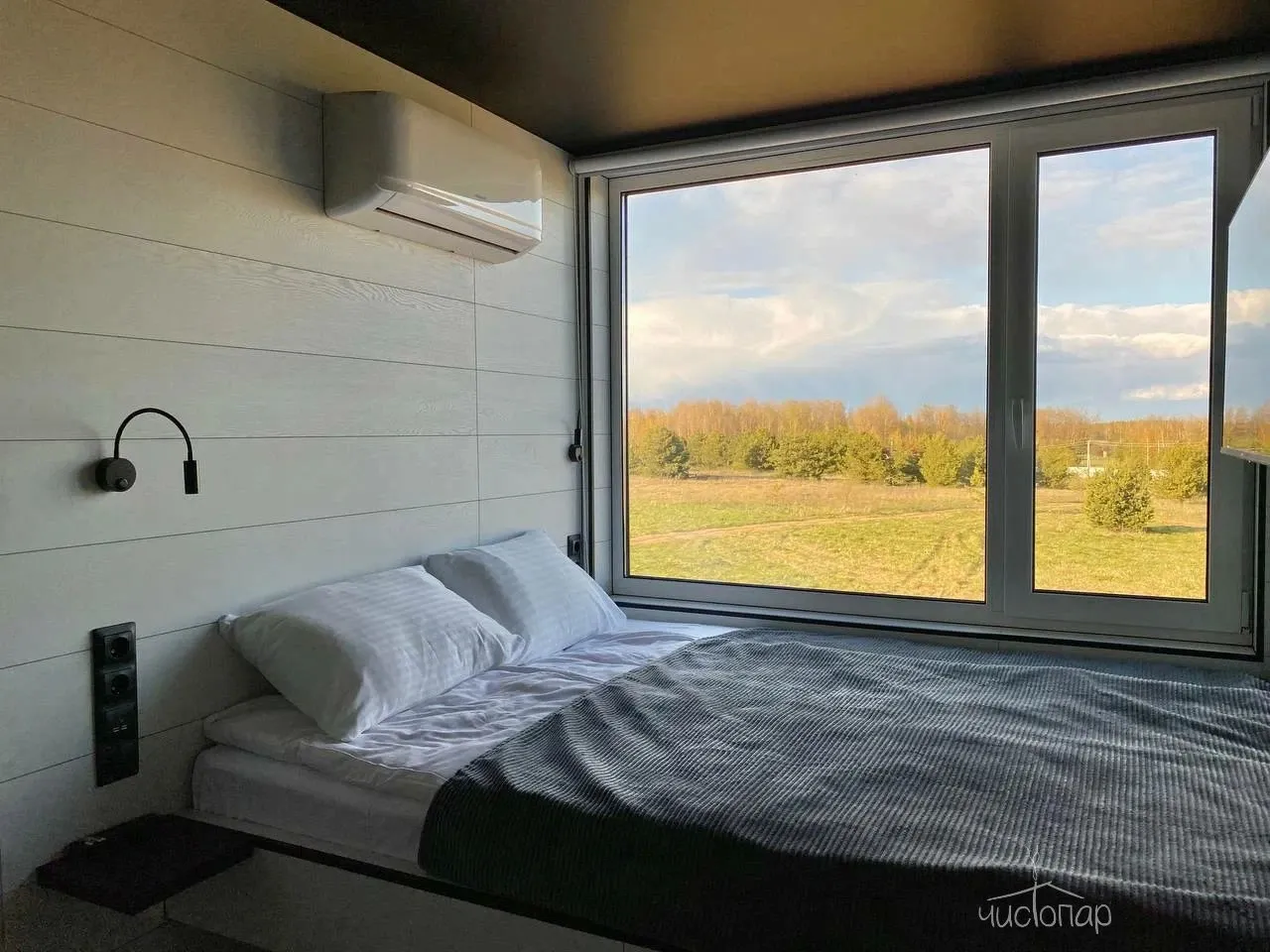 Глэмп с 2 спальнямиДвухэтажный глэмп с панорамным видом на озеро и поле.