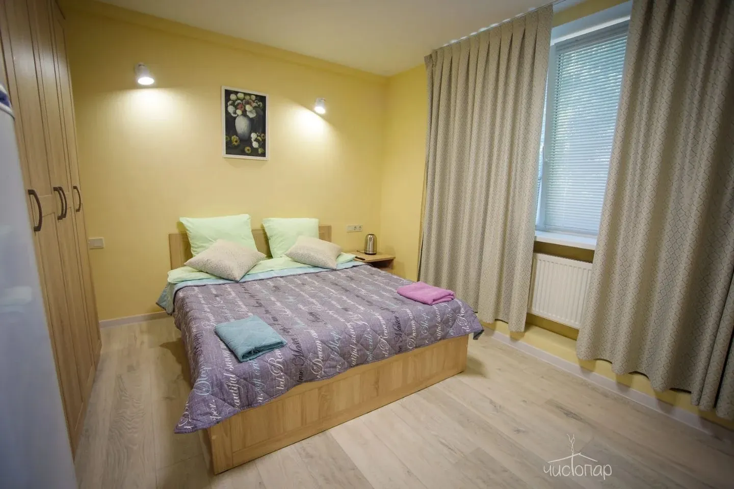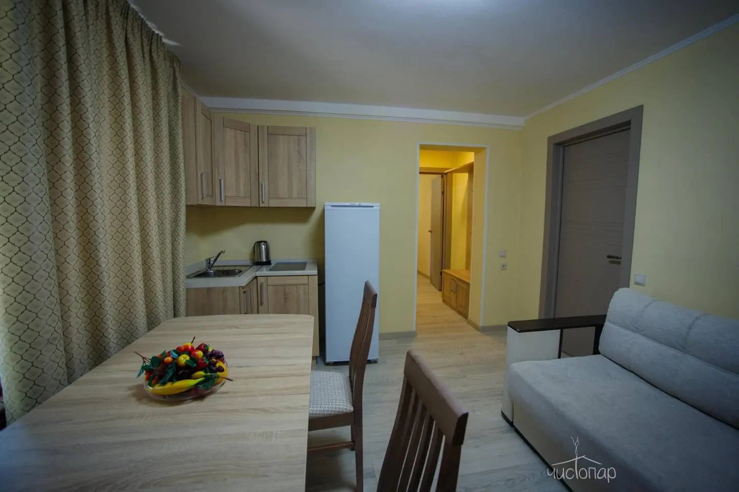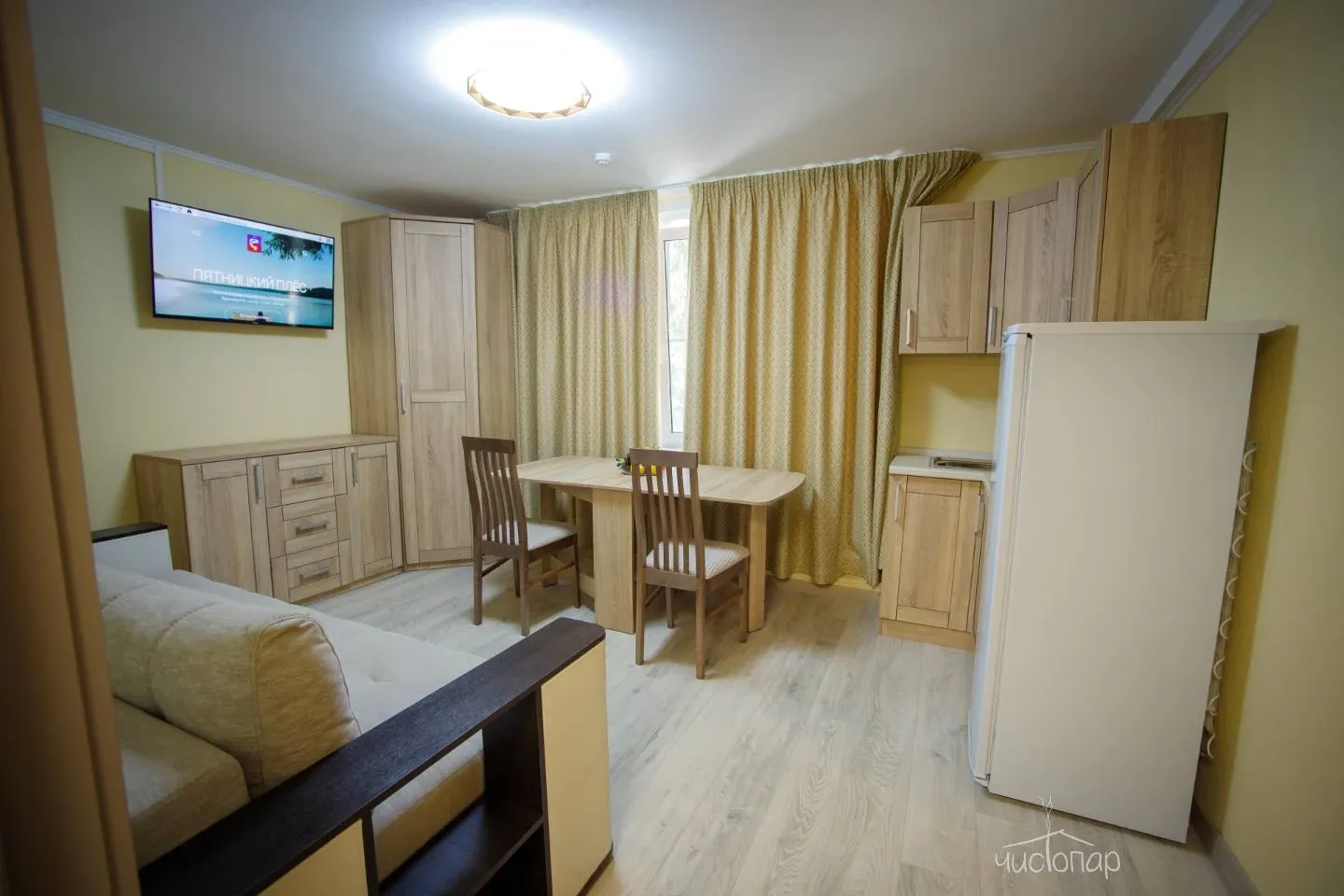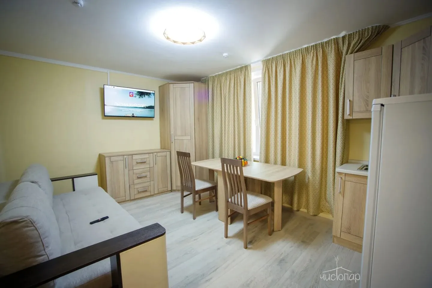 О номере: Отопление/Обеденная зона/Обеденный стол/Электрический чайник/Холодильник/Кондиционер/Шкаф или гардероб/Рабочий стол/