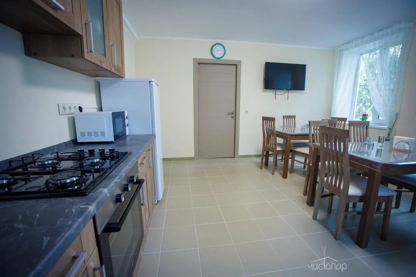 Комфортабельная гостиница или отдельный Дом (Коттедж) с террасой. Улучшенные номера оборудованы собственными туалетными комнатами. На двух этажах гостиницы имеются полноценные кухни, оборудованные всей необходимой техникой. А также есть уютные летние домики для проживания.