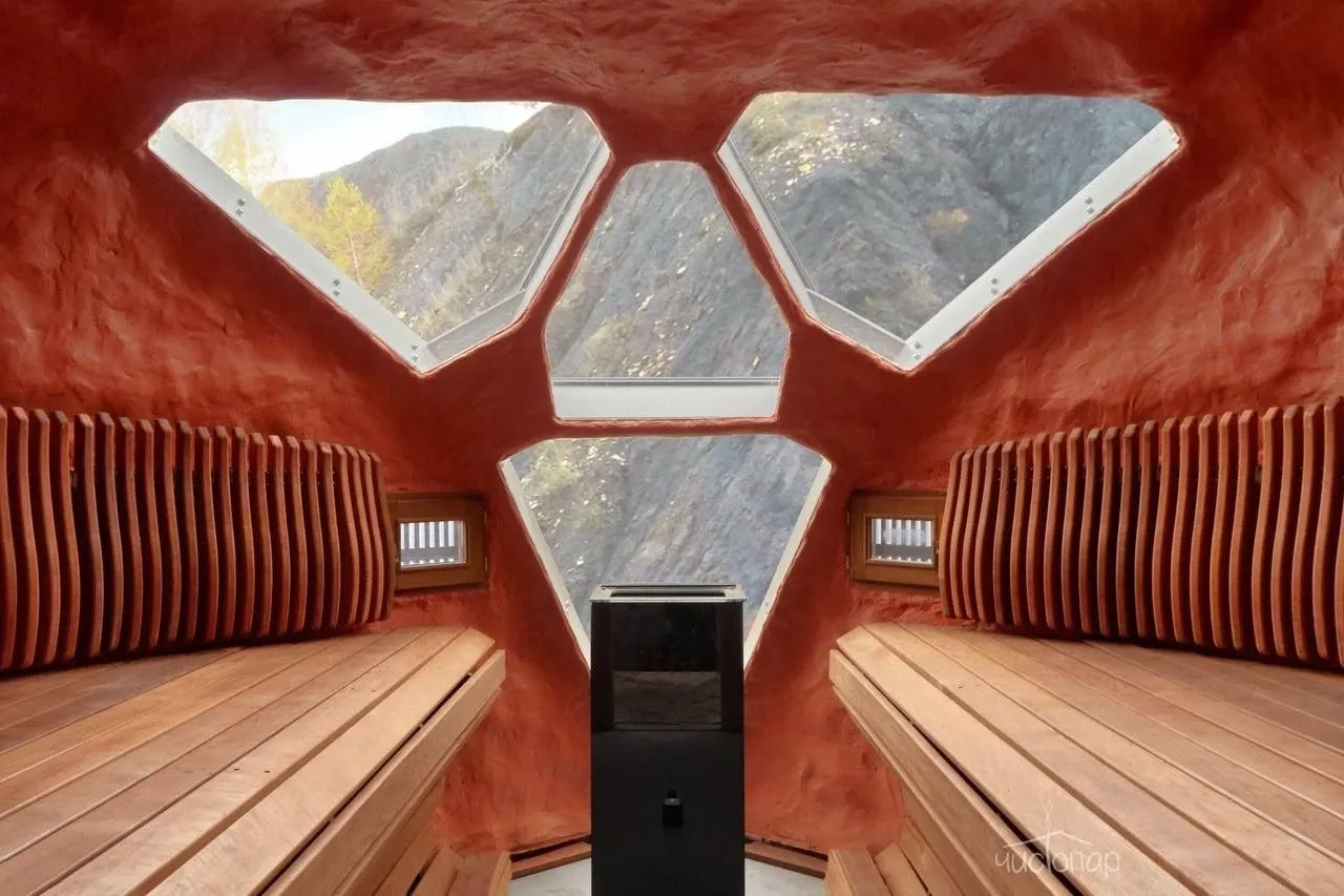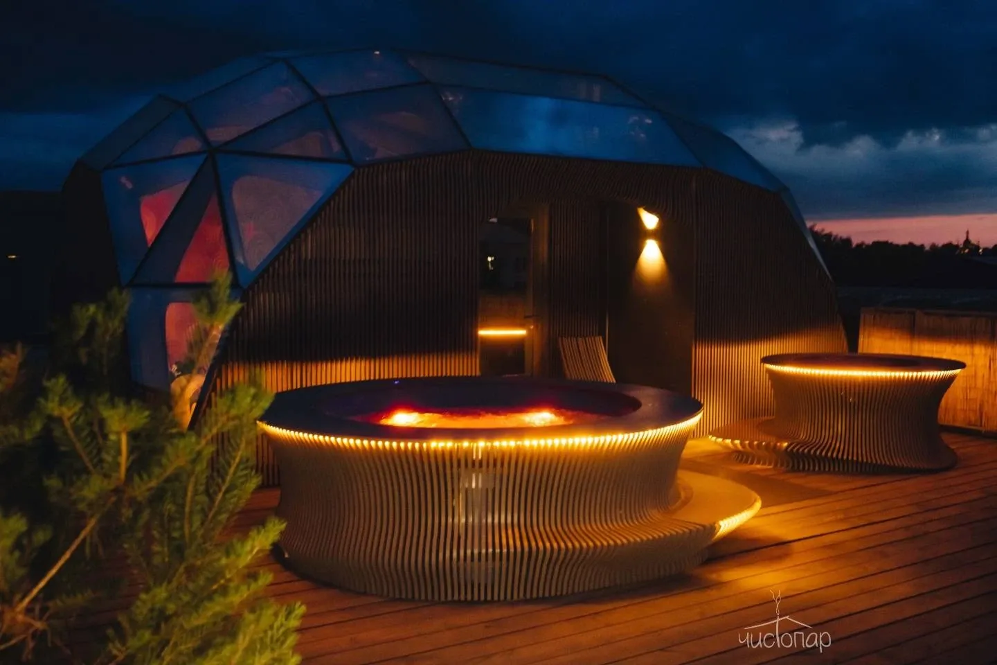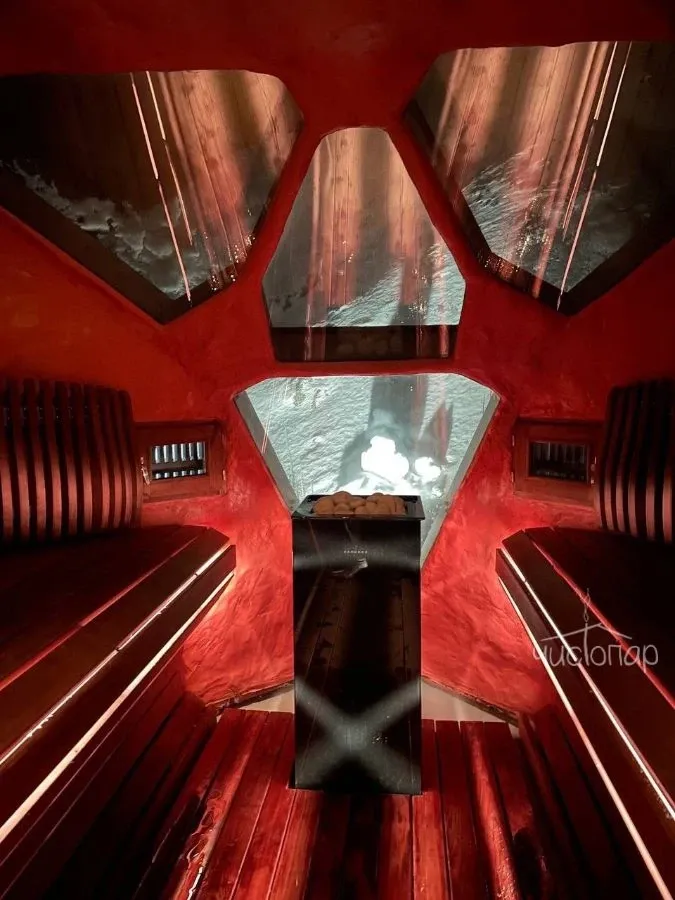 Проведите время в бане с прозрачным потолком, дизайн которой разработала нейросеть, а внутри все управляется с мобильного телефона. Вам остается только расслабиться и получать удовольствие от парения, прекрасных видов и интерьера