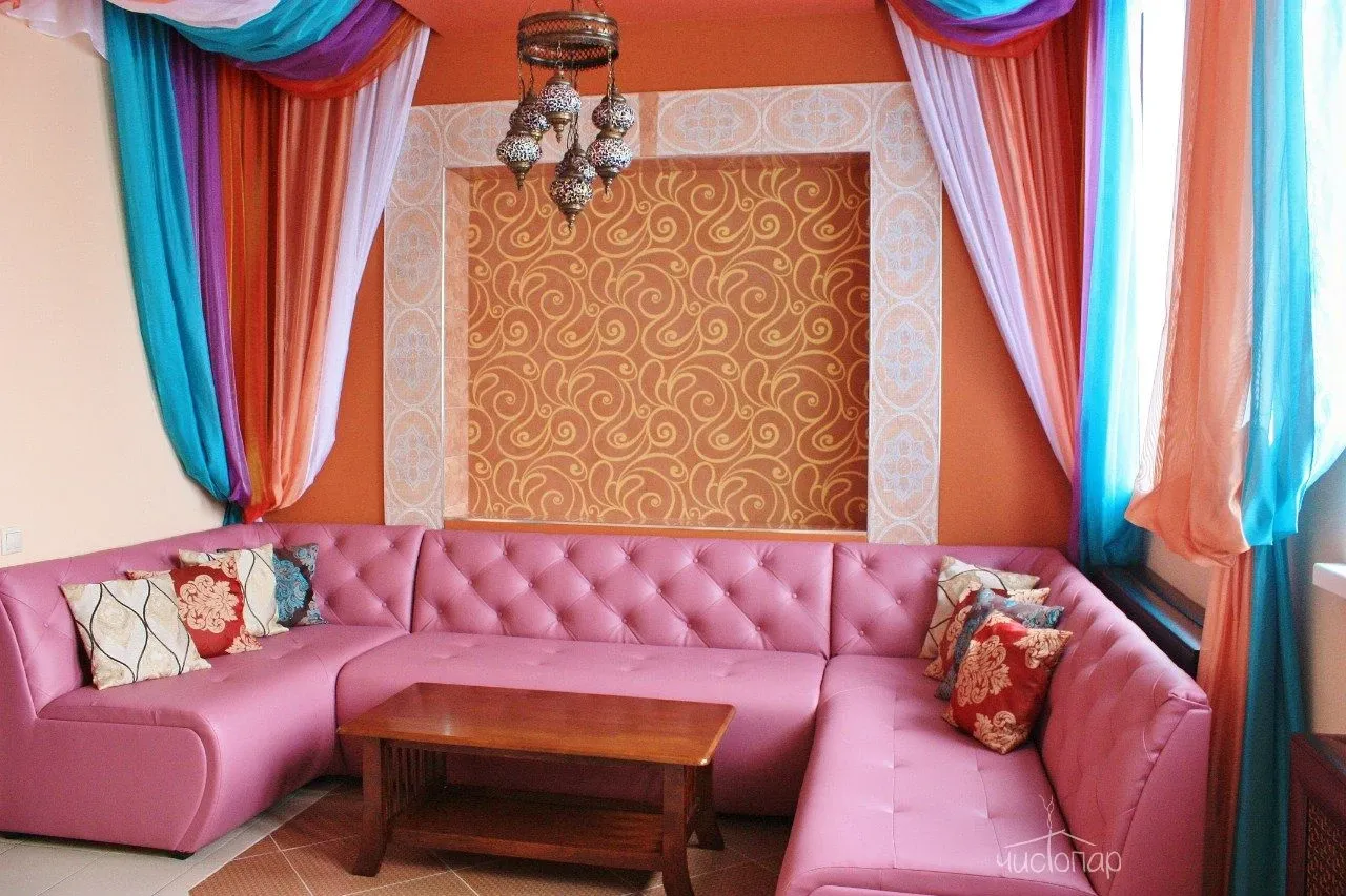 Великолепное разнообразие оттенков, ковры, шёлковые занавеси и мягкое освещение – всё это создаёт интимную, камерную обстановку и настраивает на полное расслабление и релаксацию.