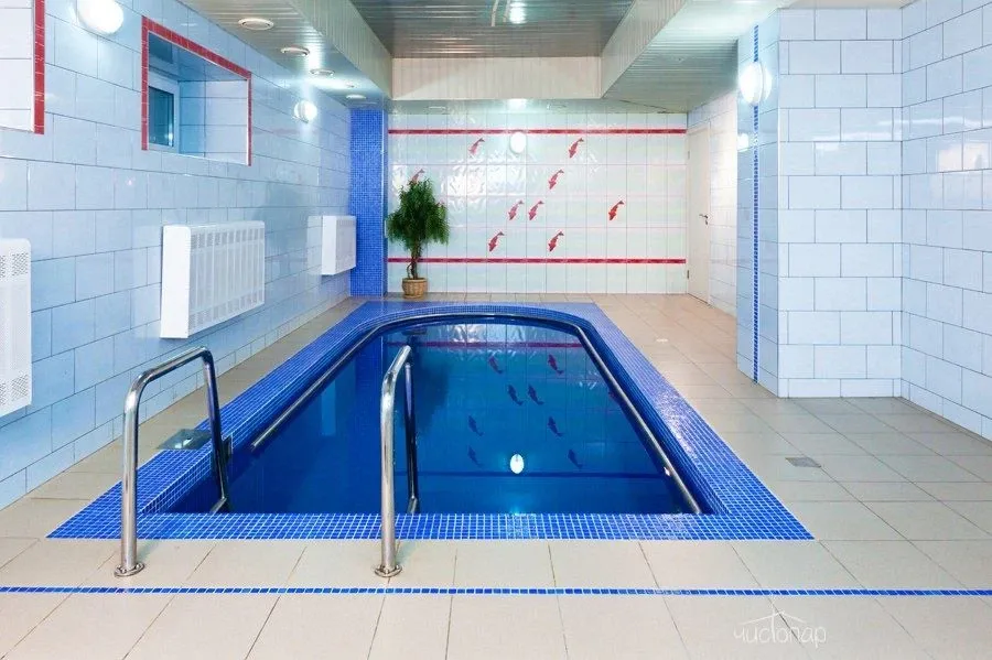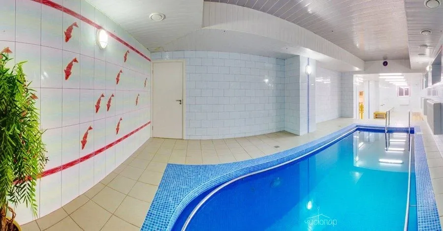 А еще, в сауне Wi-fi, спутниковое телевидение и бассейн оборудован эффектом гидромассажа. А в кафе-баре можно заказать ароматный чай и блюда на любой вкус.