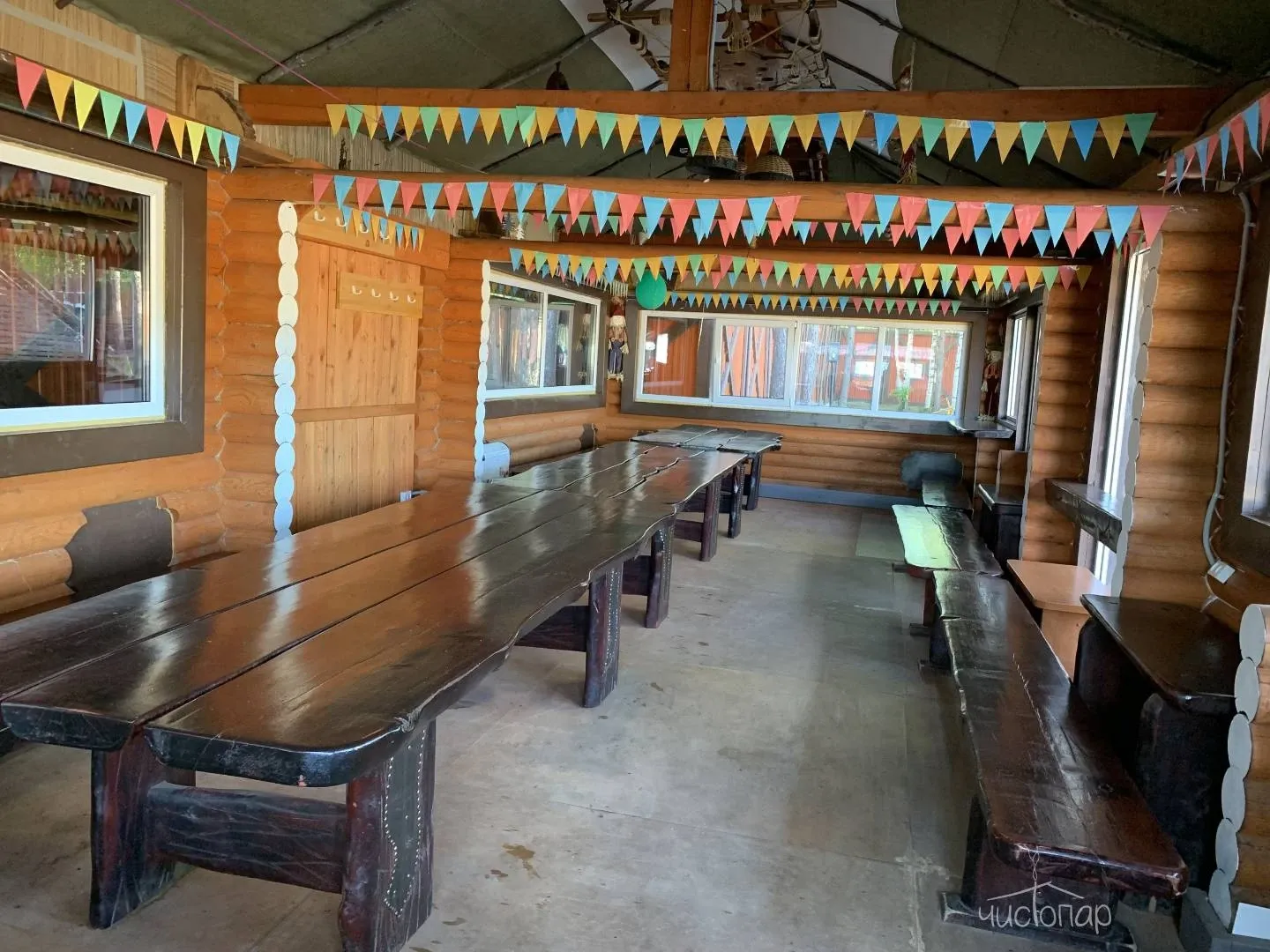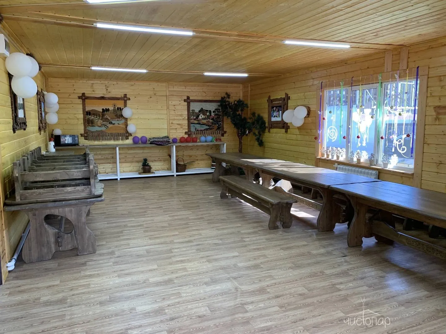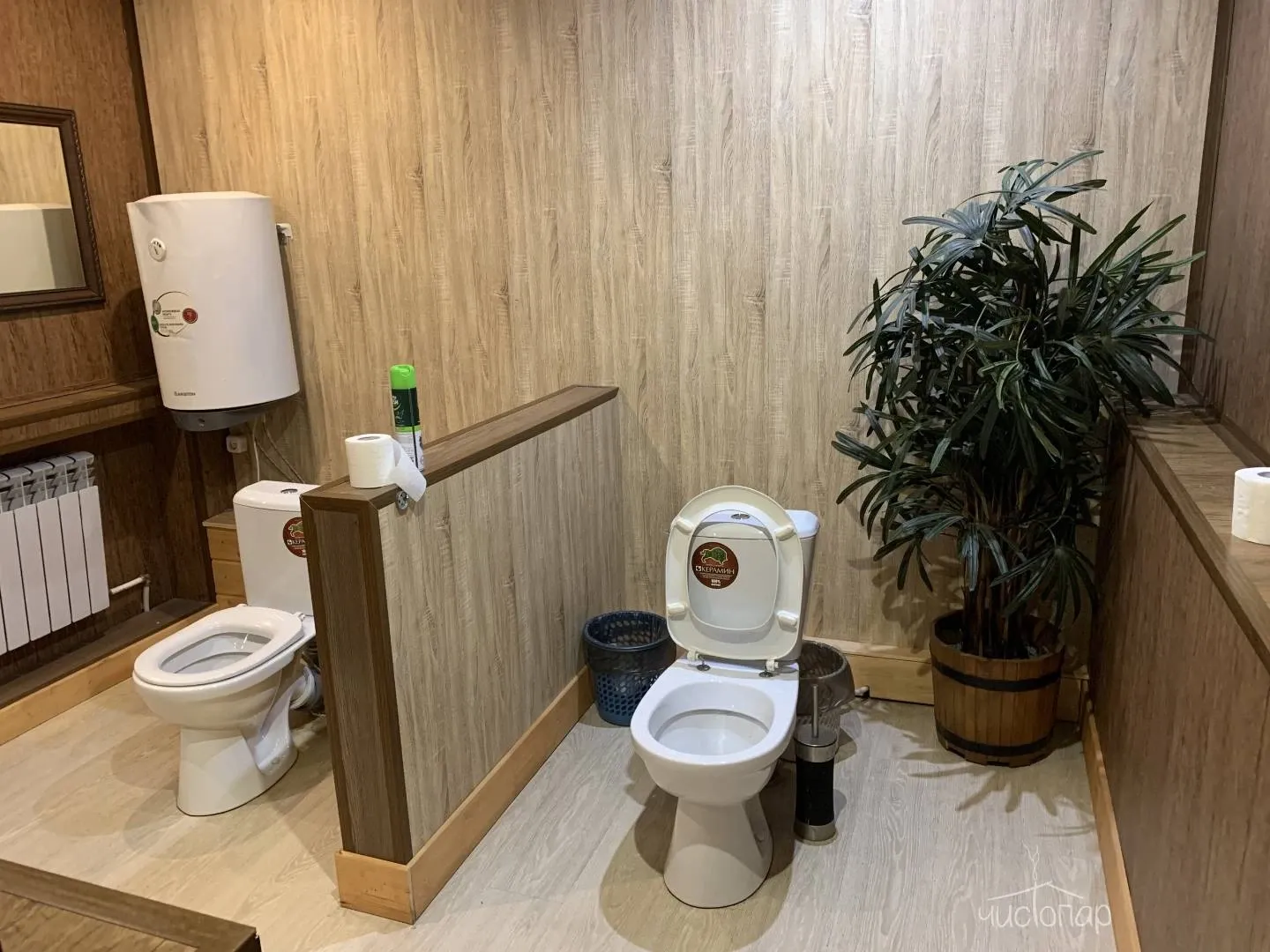 Оснащение: отопление, обеденные столы, лавки, чайник, телевизор, микроволновка, мангал, раздельные санузлы для женщин и мужчин.
