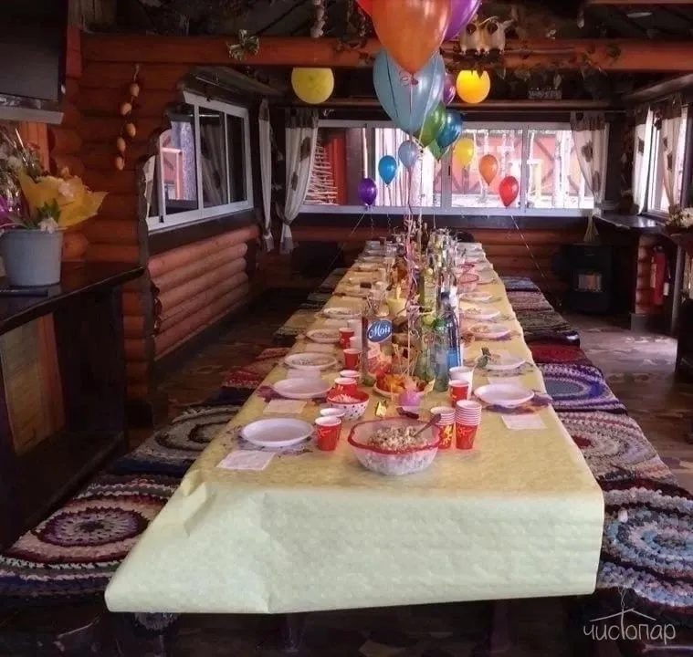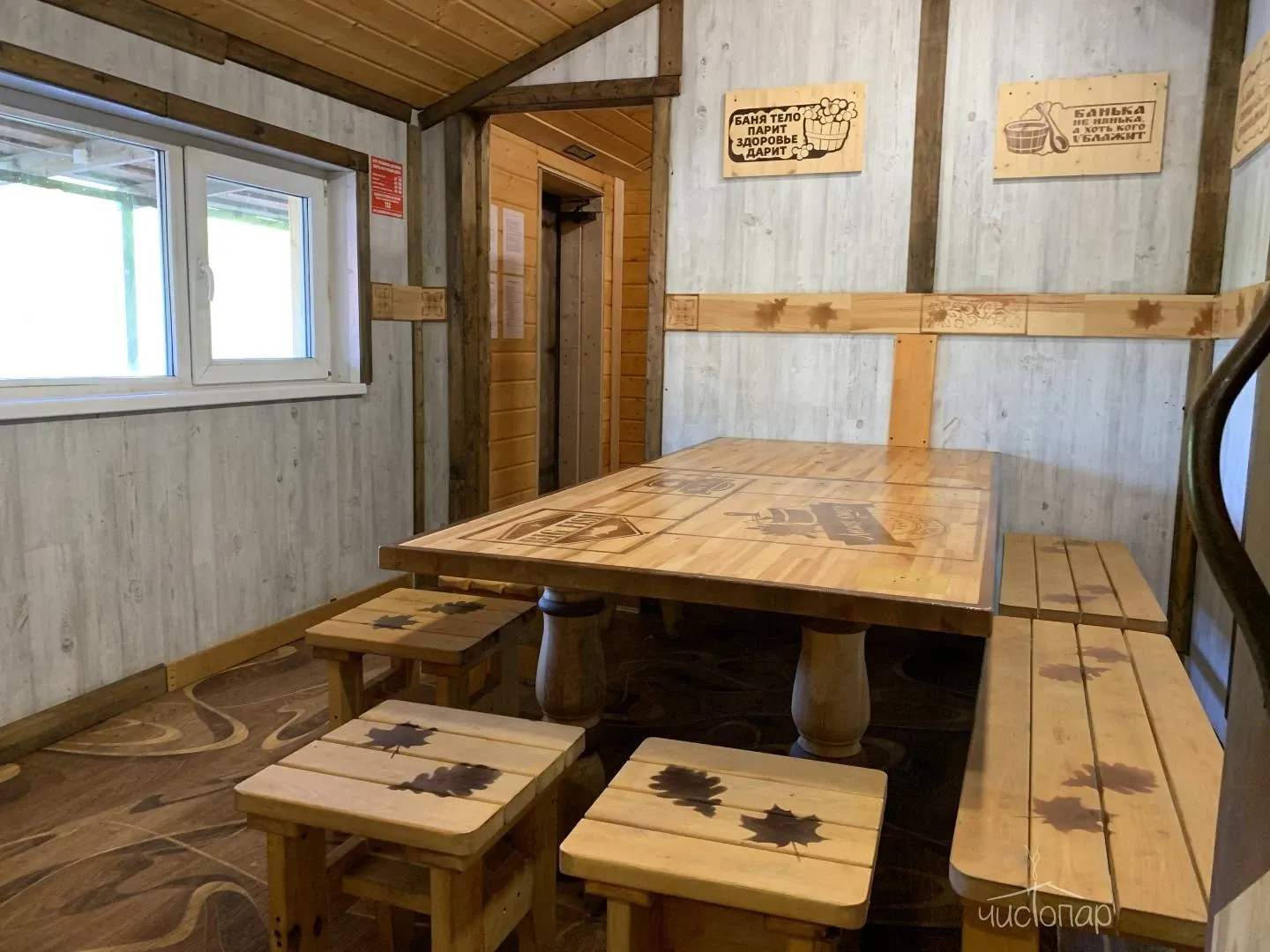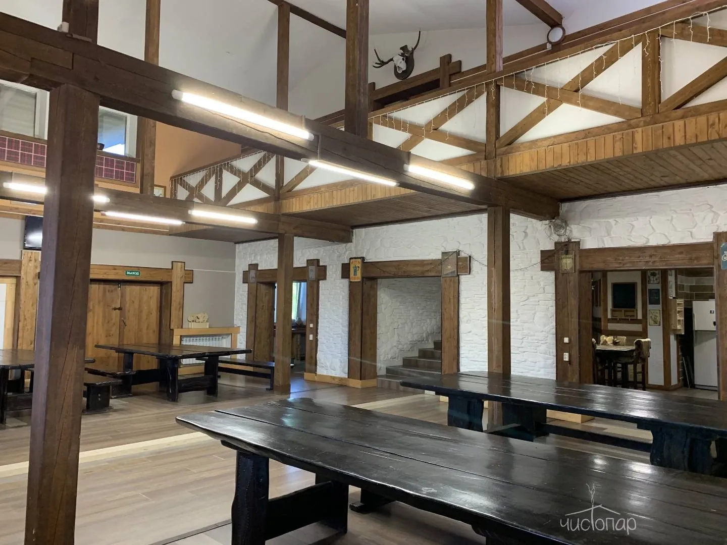 Оснащение: отопление, обеденные столы, лавки, чайник, телевизор, микроволновка, мангал, раздельные санузлы для женщин и мужчин.