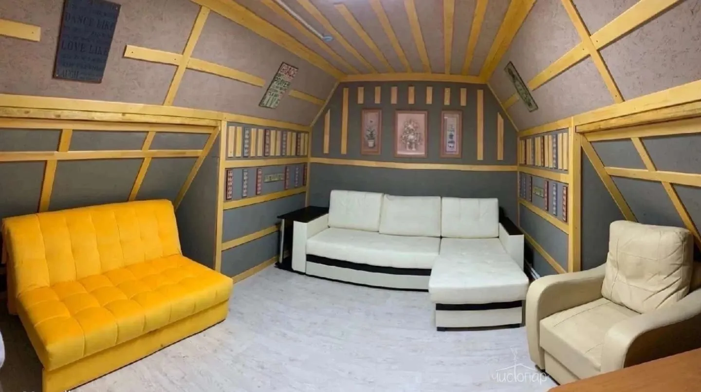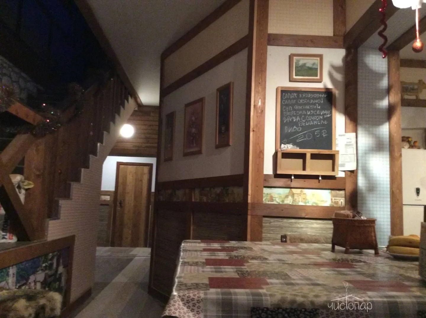 На втором этаже коттеджа расположен балкон с видом на банкетный зал и уютные спальни в индивидуальном стиле.