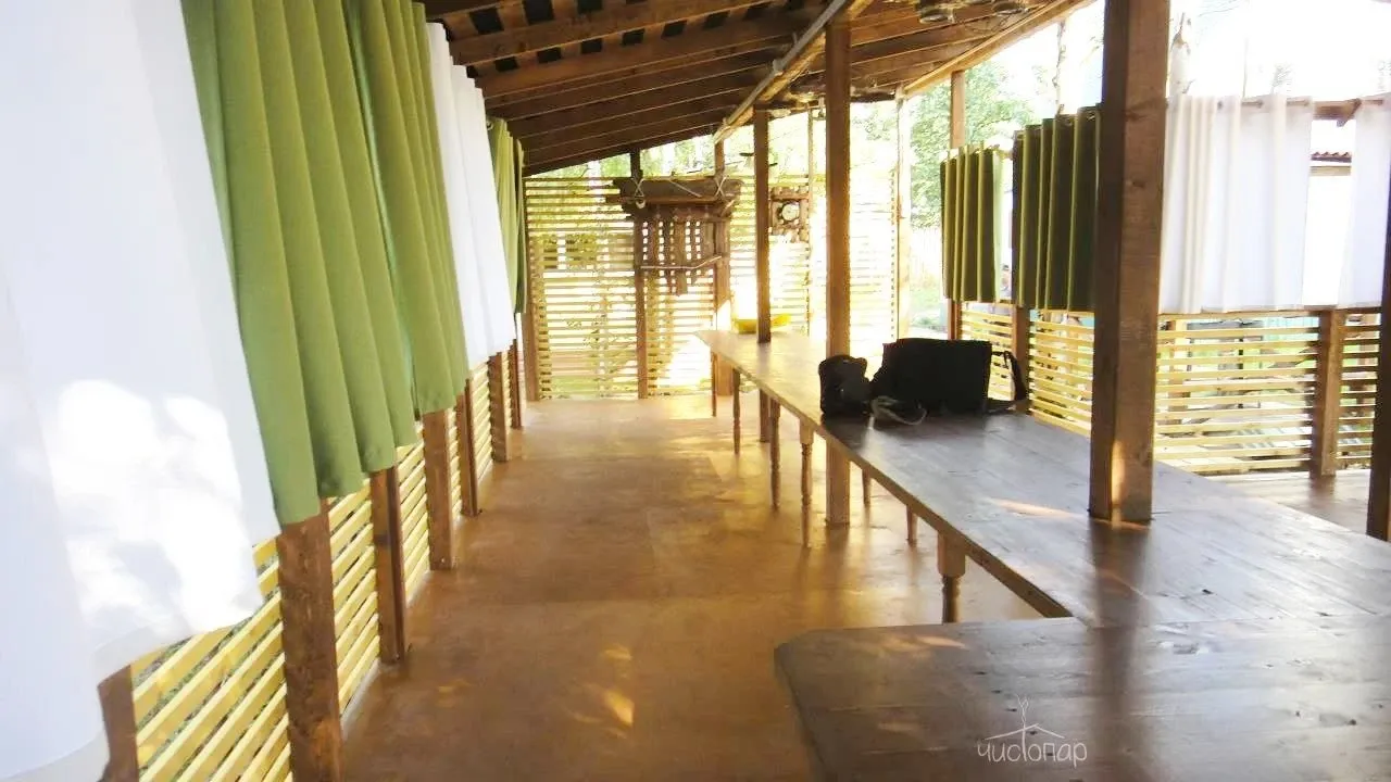 Курить в жилых помещениях (коттеджах, банях, беседках) строго запрещено. Место для курения оборудовано на веранде.