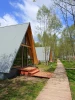 На территории глэмпинга: 6 комфортных домиков: мини-кухня, телевизор, душ, туалет. Домик вмещает до 6 человек.
