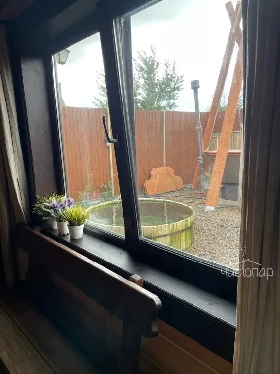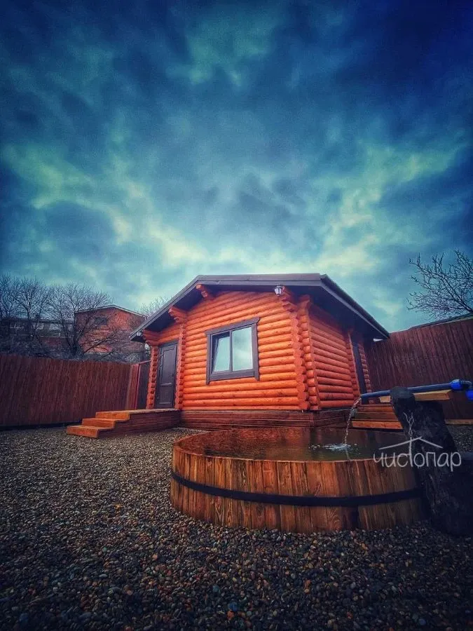 Баня №2Баня № 2 - построена из бревна Кедра - во дворе один домик: раздевалка, комната для чая, душ, санузел, парная. Парная большая, красивая, стены парной из бревна Кедра. Бревно от нагрева смолится и дает приятный и полезный аромат Кедра. Во дворе Ледяная Купель с проточной Родниковой водой 1.40 м глубиной, и 2.20 в диаметре.