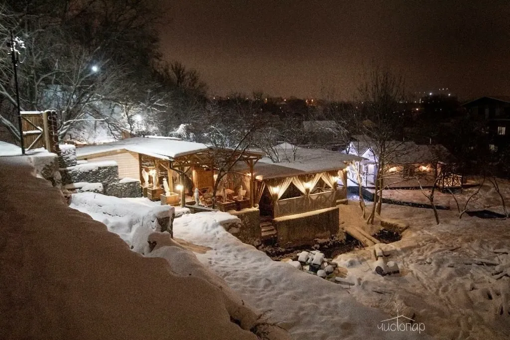 В комплексе 3 бани на дровах, каждая из которых со своей купелью. В купелях родниковая вода (температура родниковой воды круглогодично - 11 градусов), а бани топятся дровами. Также в комплексе есть беседки на разное количество гостей (5-60 чел.) для проведения мероприятий.