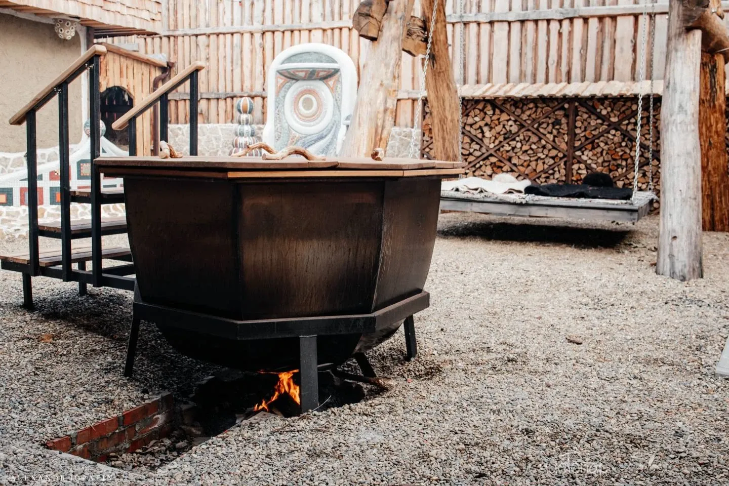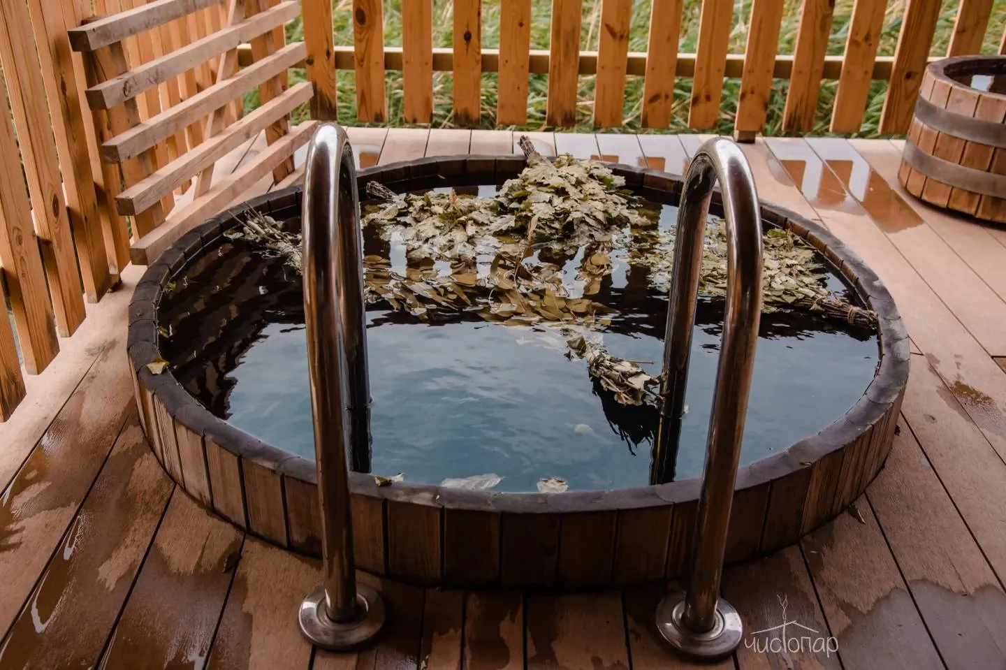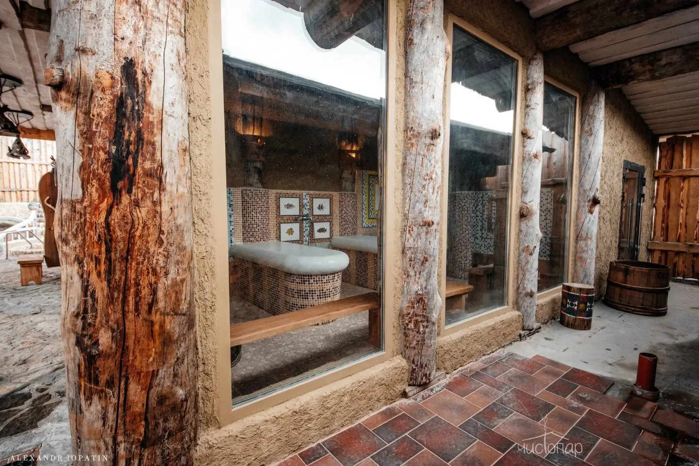 2. Баня «4 Стихии». Это пространство здоровья и красоты, где все продумано до мелочей: аромат глинобитной парной с кедровыми полками, травы, мягкий пар и Аромапарние, бодрящая родниковая вода в купели, бассейн под открытым небом.