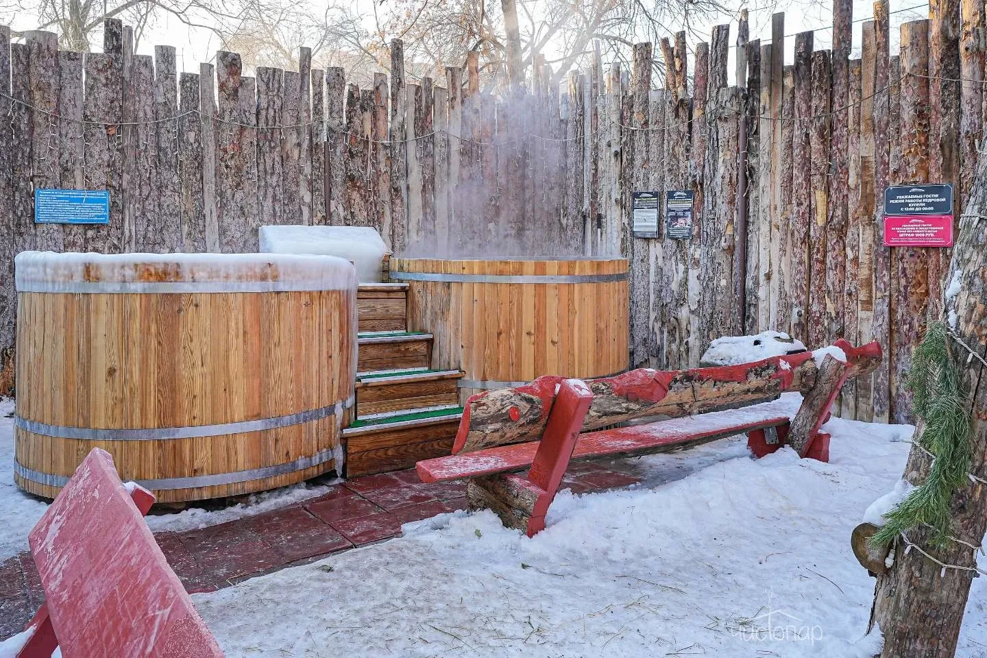 Банно-ресторанный комплекс «Деревенька» на ул. Воронежской включает в себя общее отделение на 75 мест. Отдельные кабинеты для компаний на 4,6,8 чел. Атмосферный зал для отдыха после парной с мягкими сидениями из натуральной кожи, эти же сиденья представляет собой персональные гардеробные шкафчики. Просторная общая парная с изумительным паром от авторских печей, которые топятся дровами. До открытия парная тщательно вымывается и сушится (полы, стены, полки), все эти ночные мероприятия позволяют каждый день встречать гостей в чистой парной со свежим мягким паром! Парные для индивидуальных парений. Мыльное отделение: просторные душевые; для контраста: современные обливные устройства «Каскад», бассейн с артезианской водой, кедровая купель с холодной водой на свежем воздухе, так же во дворе имеется горячая купель, подтапливаемая дровами в течение дня, наполненная натуральным отваром эвкалипта или пихты.