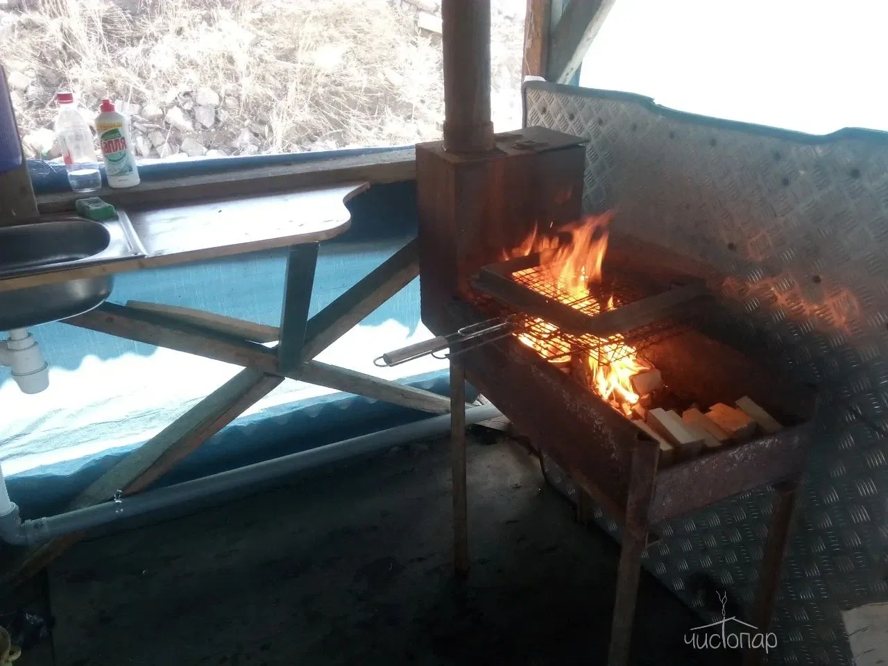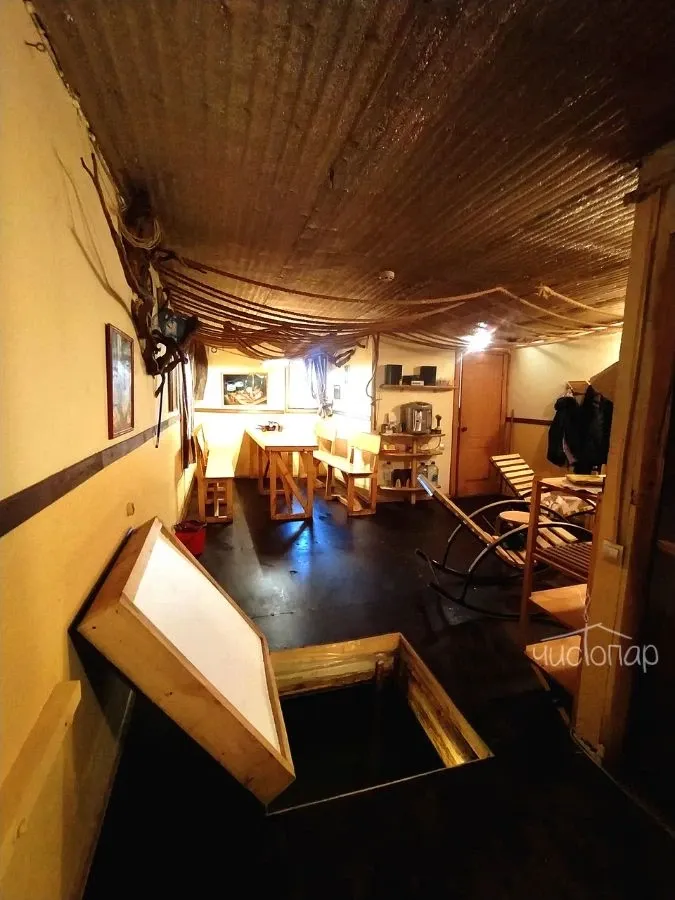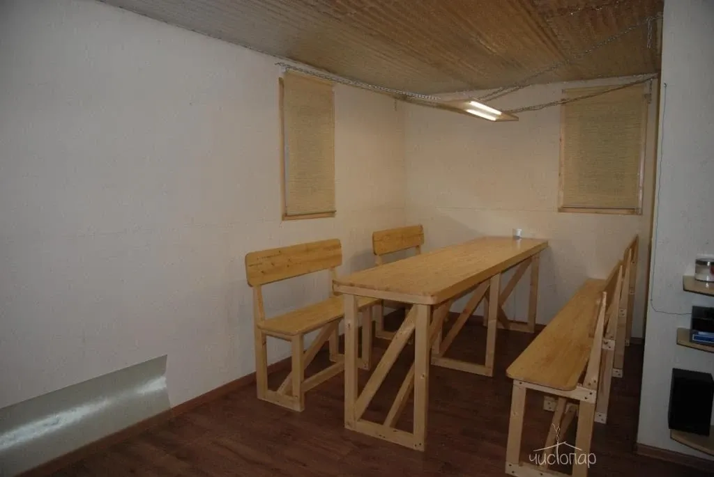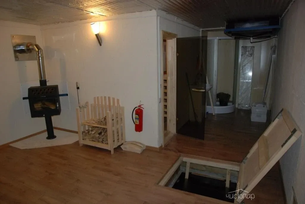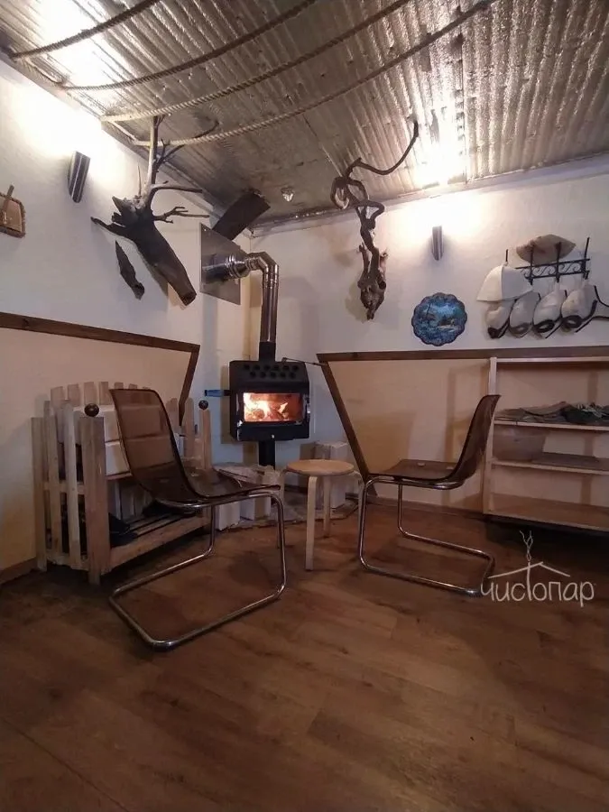 Баня на воде с прорубью внутри на дровах. Комфортная зона вместимостью до 8 человек. Чайный столик, термопот.