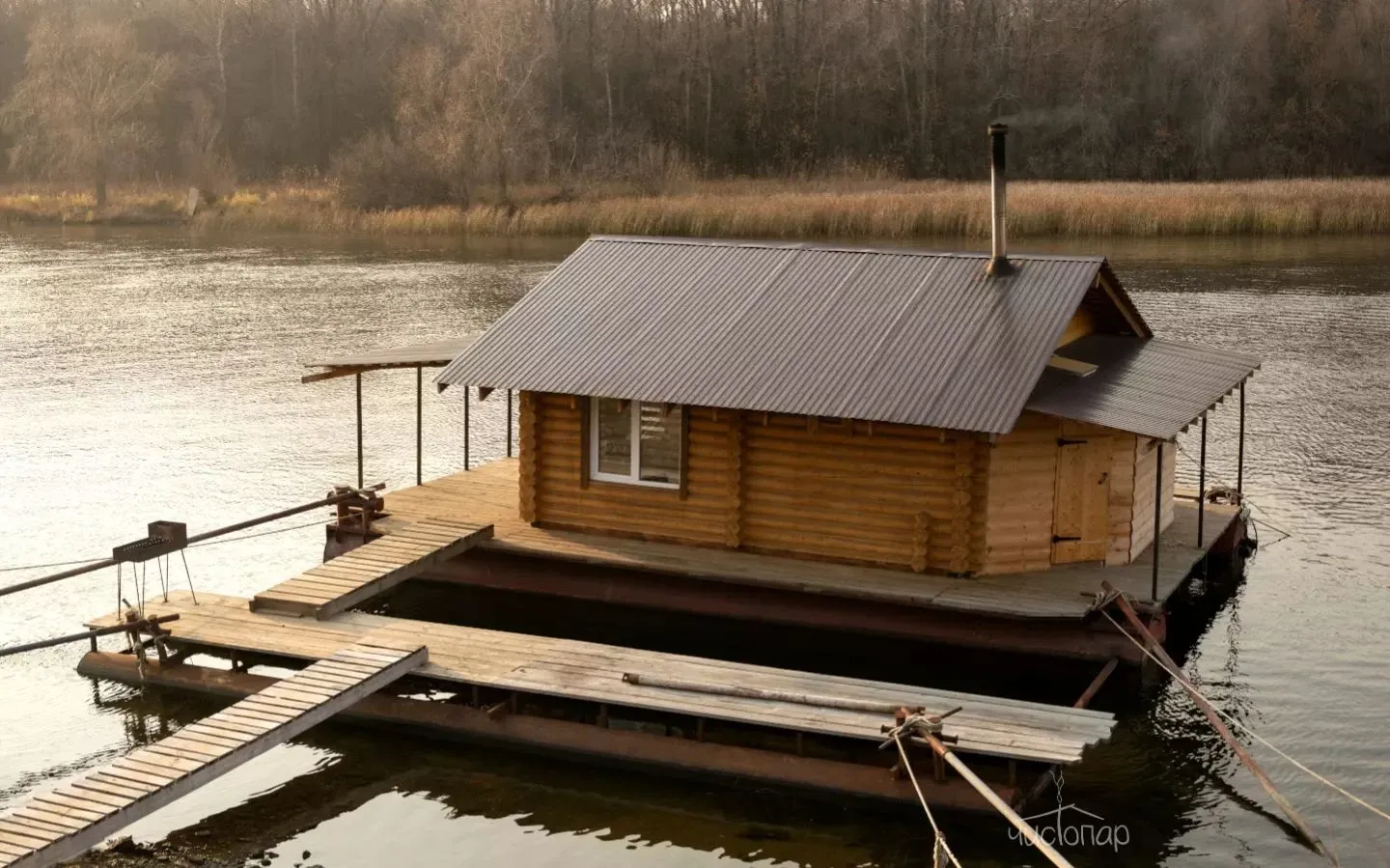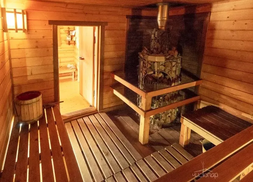 - из парной можно окунуться в реку