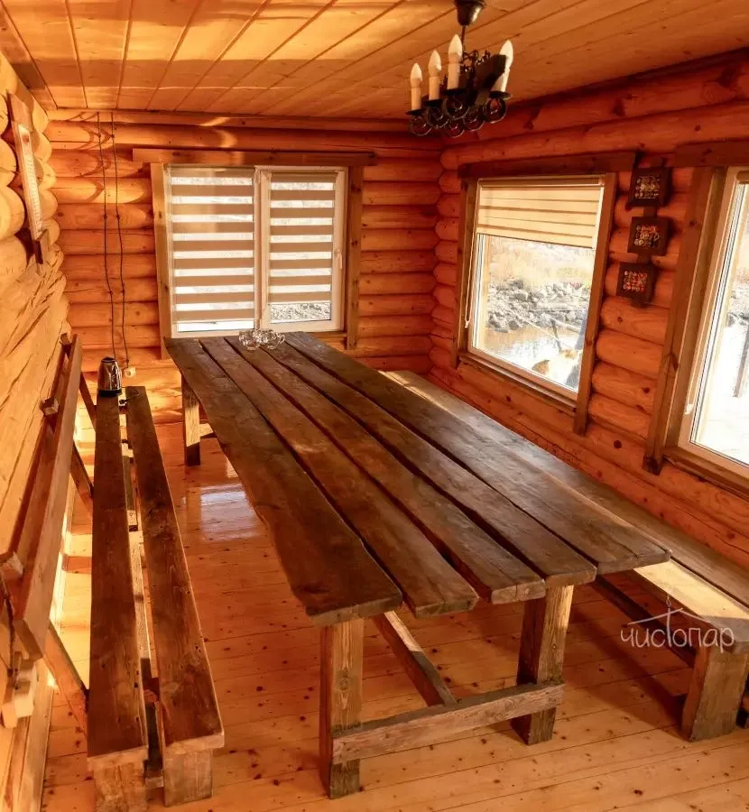 - просторная комната отдыха со столом на большую компанию