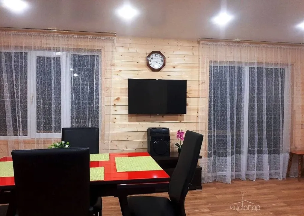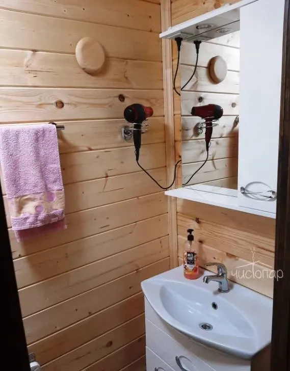Баня топится дубовыми дровами. Большая просторная парилка из кедра.