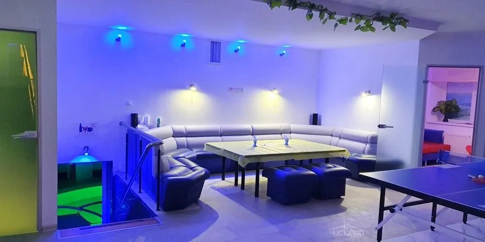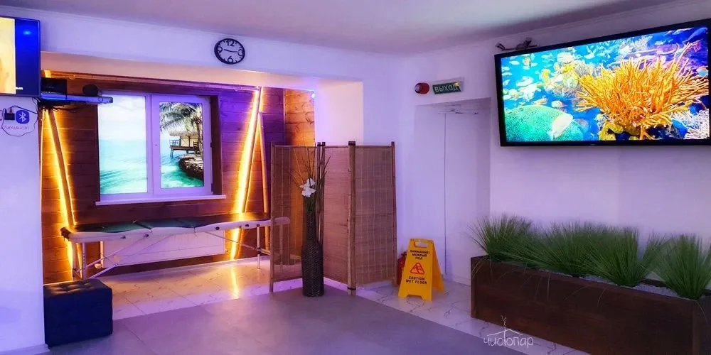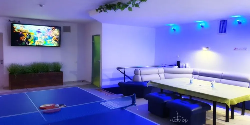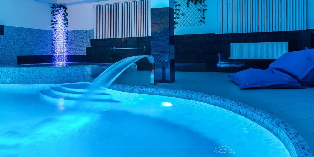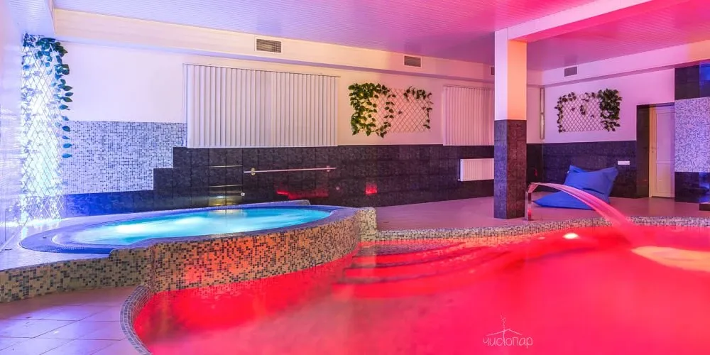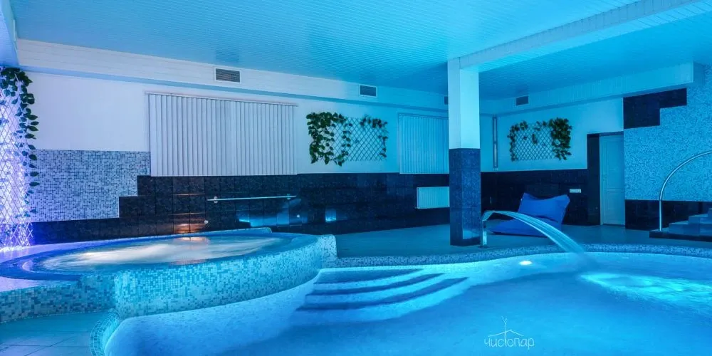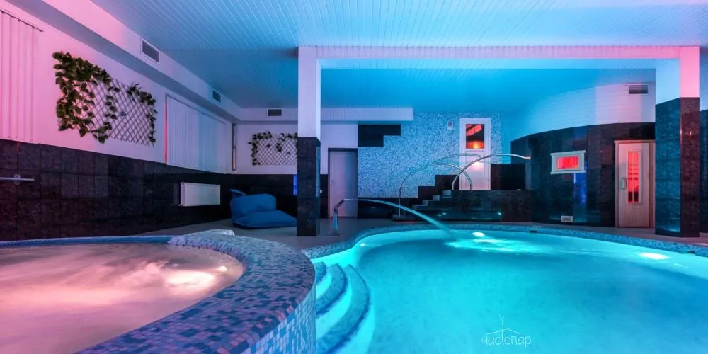В сауне работает эффективнейшая система очистки воды в каждом из бассейнов. Она производится при помощи современного импортного оборудования (ультрафиолет, роботизированная очистка, двойная фильтрация). Фантастически впечатляющая подсветка воды в басcейнах - лазурная, голубая, фиолетовая, зеленая, желтая, красная, белая - или комбинацию разных цветов!