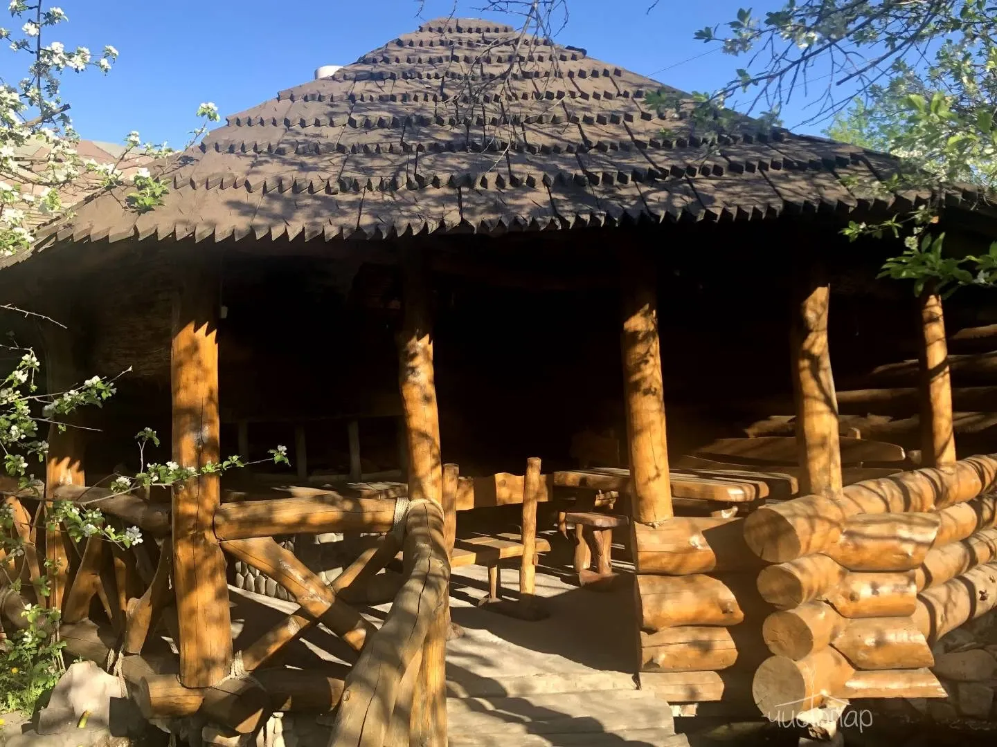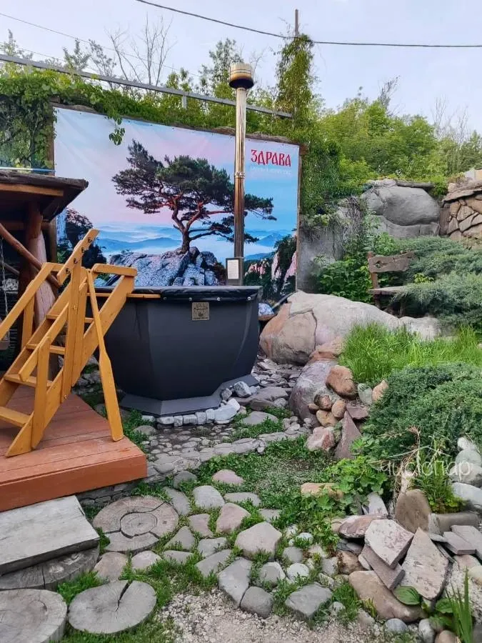 На территории расположены: водопад, мангальная зона, качели, лавочки, фурако (чан). При использовании фурако и мангала вносится доплата.Читать далее