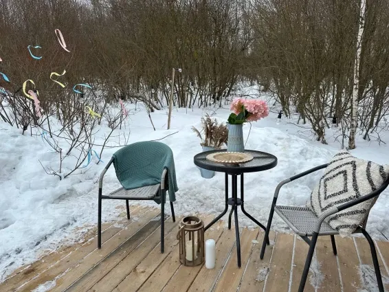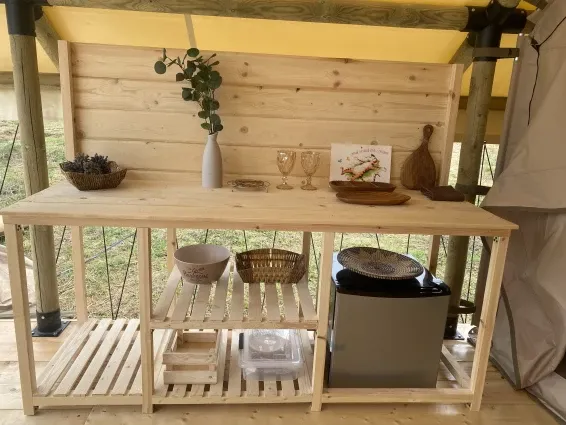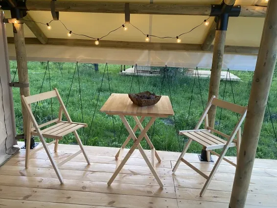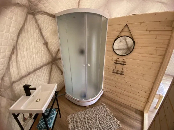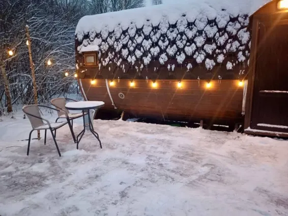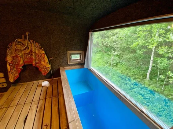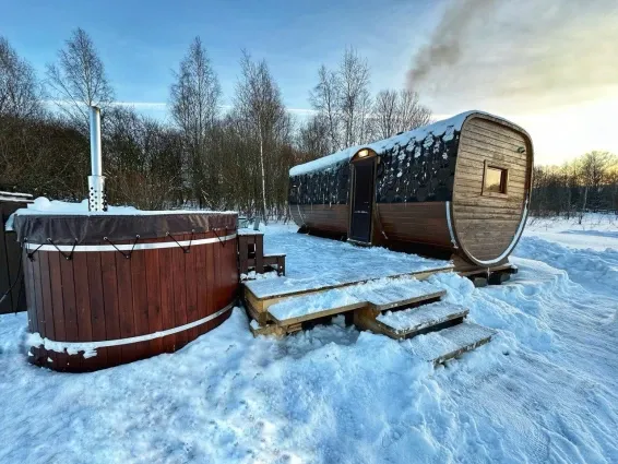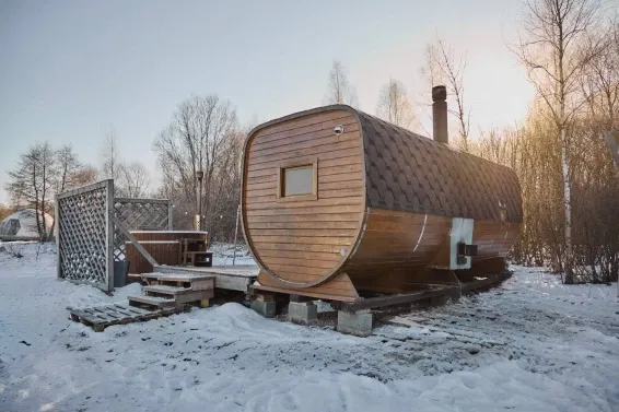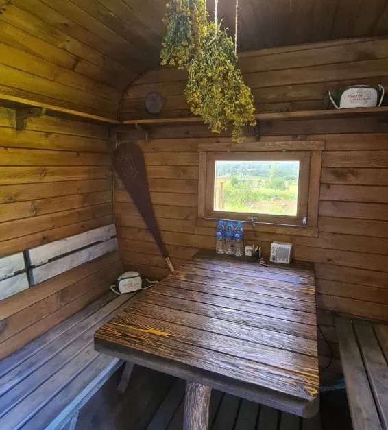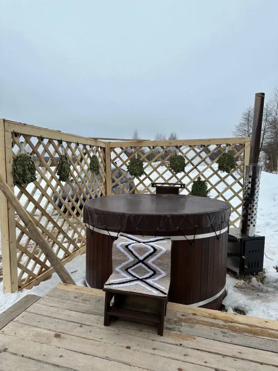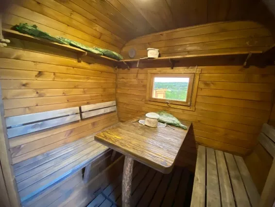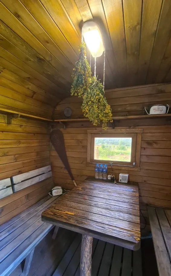 На территории глэмпинга расположена баня-бочка с русской парной и купель фурако. Есть возможность заказать услуги пармастера.