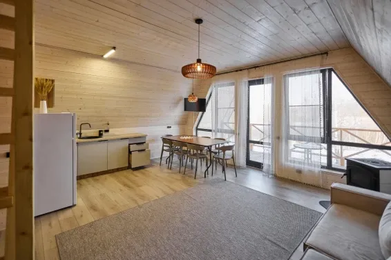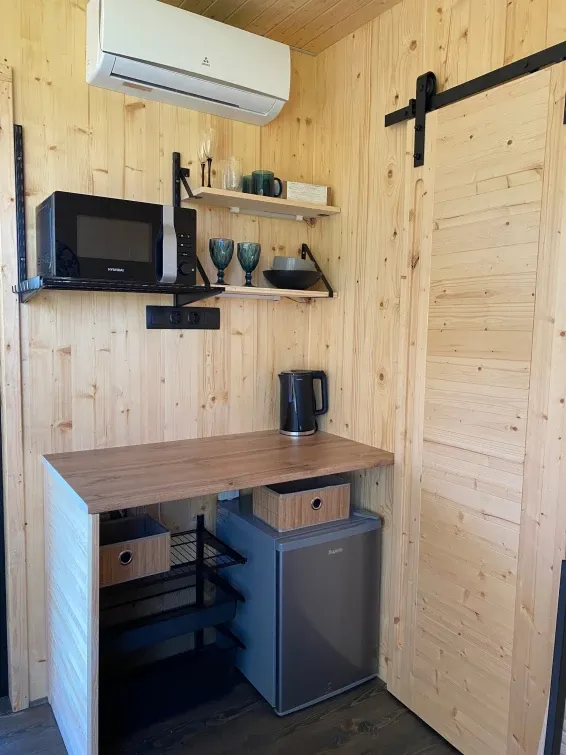 Каждый домик оборудован всем необходимым для приготовления пищи, в том числе мангалом, на котором вы можете приготовить шашлык