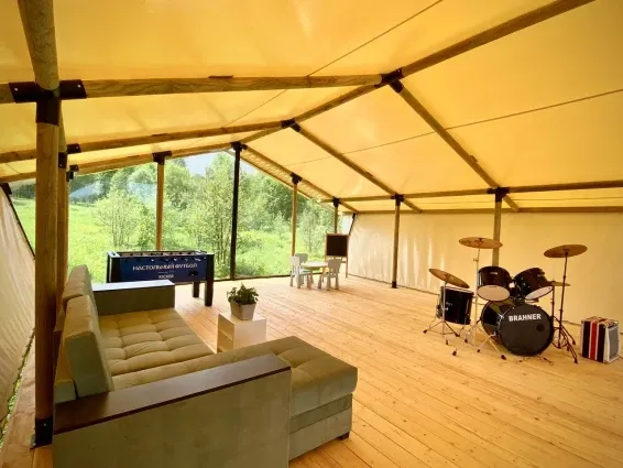 Телевизоры есть в домиках типа Афрейм, а так же в Шале. Для летних видов размещения в нашем глэмпинге планируется кинотеатр под открытым небом, где будут транслироваться фильмы для семейного просмотра, а также мультфильмы в «детские» часы.