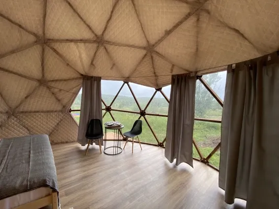 Глэмпинг «Просто COSMOS» раскинулся на живописных 20 гектарах в сердце Калужской области, неподалеку от исторического города Малоярославец.