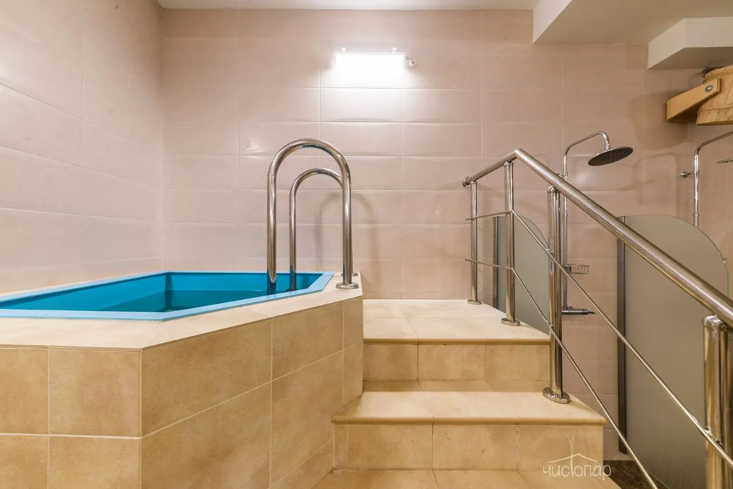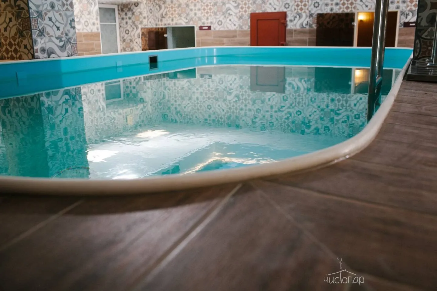 Обновленная гостиная, уютная сауна и небольшой бассейн 2х1,5 метра с теплой водой приятно порадуют небольшие компании, семейные пары с родителями и детьми.