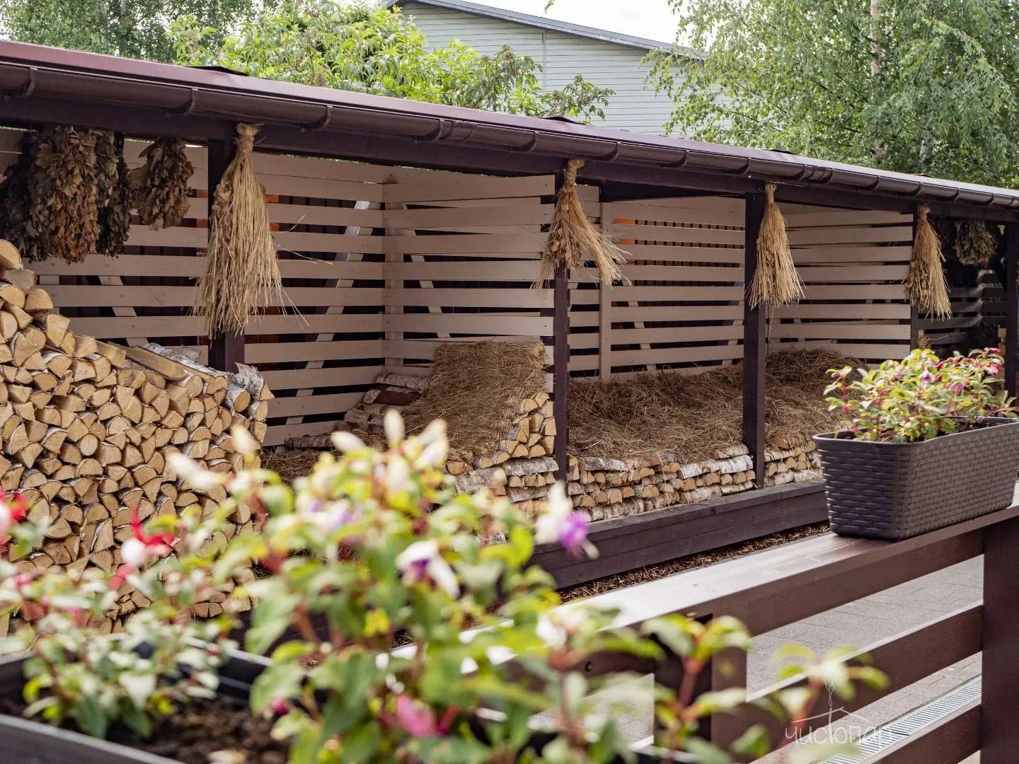 На территории банного клуба оборудована летняя зона отдыха с беседками для приготовления BBQ и мангалом. Она рассчитана на 12-16 гостей. Можно зажарить сочный шашлык и овощи самостоятельно или заказать и попробовать блюда от шеф-повара. Рядом с беседкой обустроена небольшая спортивная площадка с качелями и тренажерами. Изюминка летней зоны — сеновал и сенные качели, где приятно будет отдохнуть от парений и подышать свежим летним воздухом.