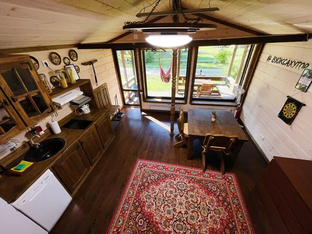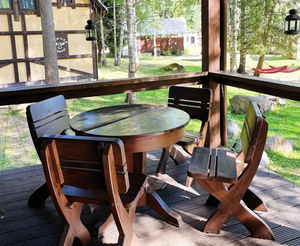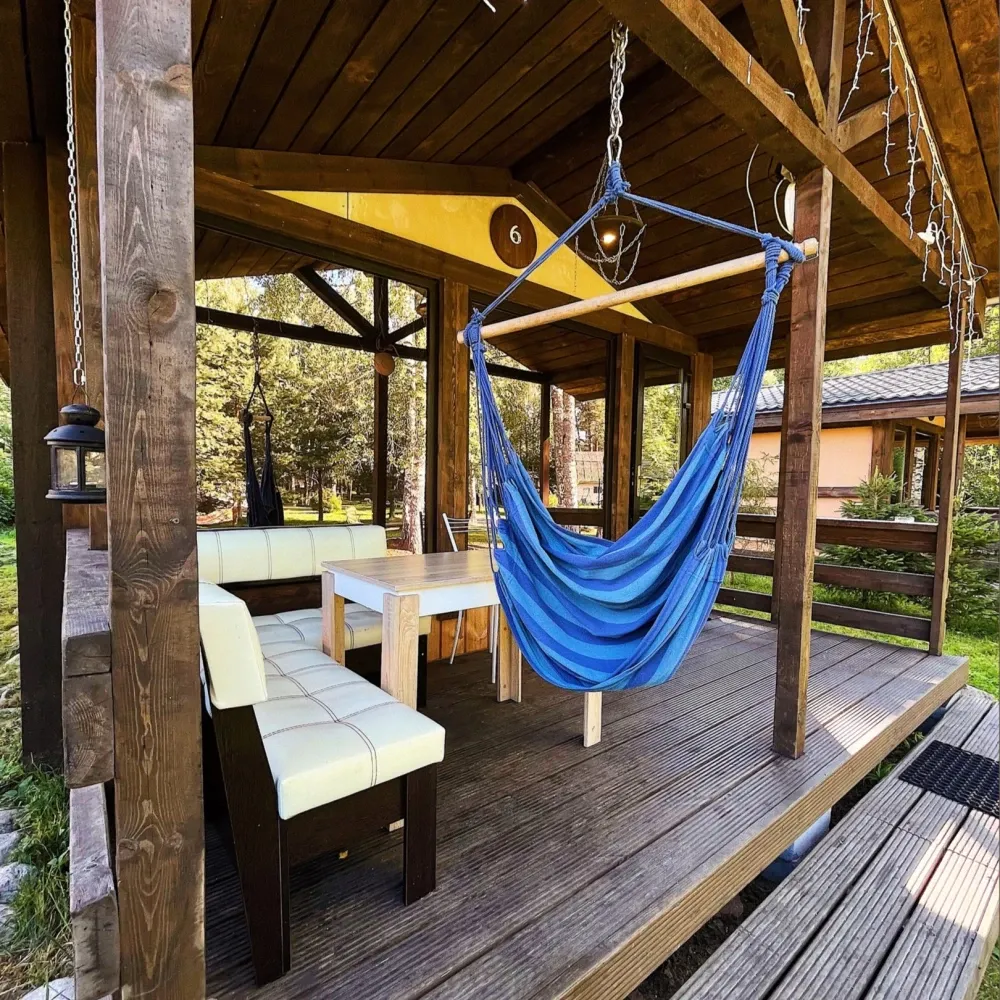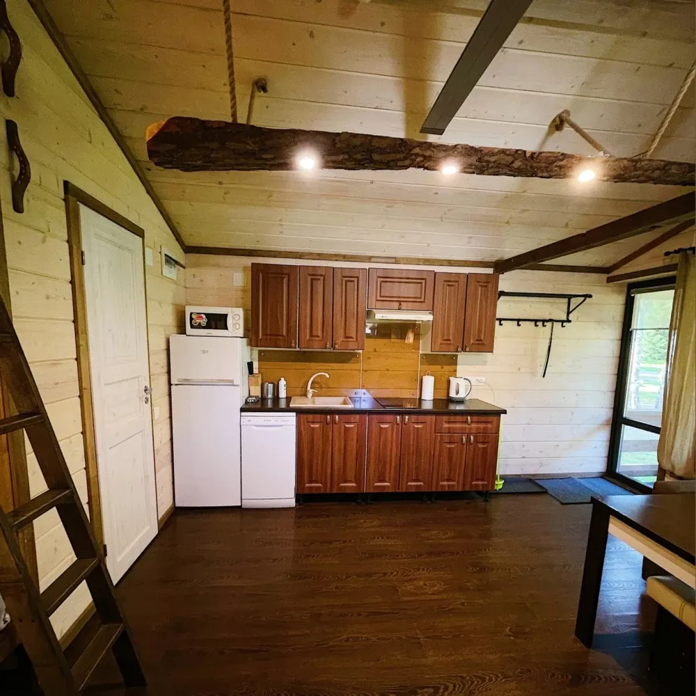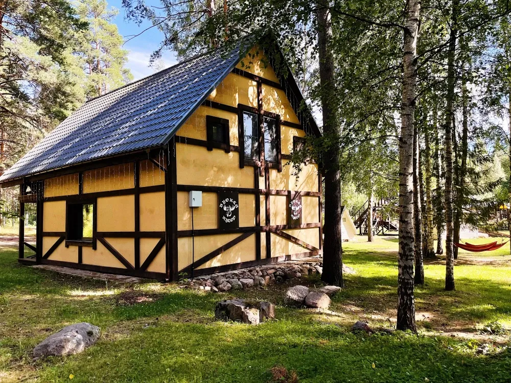 Домик расположен в укромном уголке базы, предлагая идеальное сочетание уединения и доступа ко всем преимуществам удивительного места.