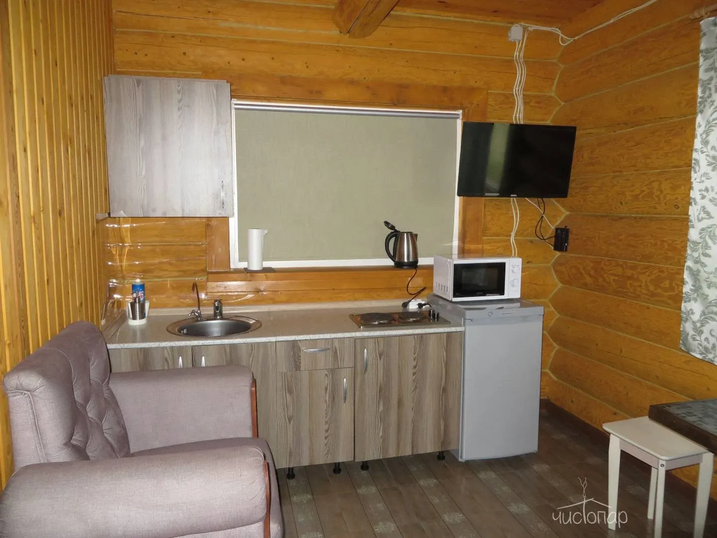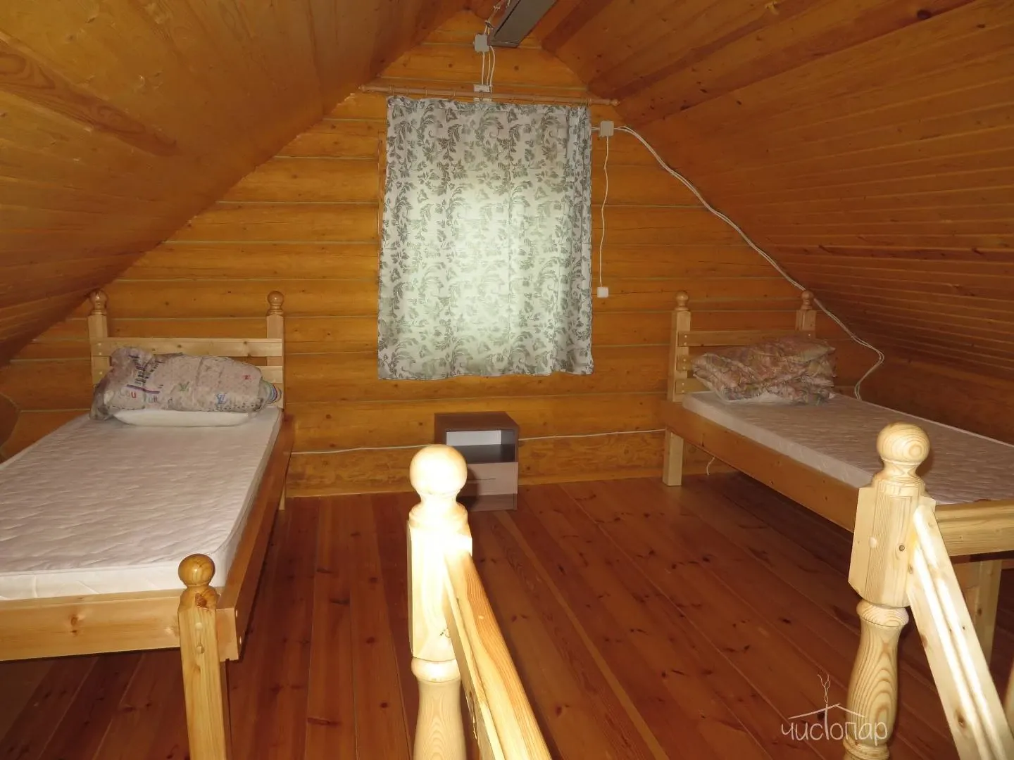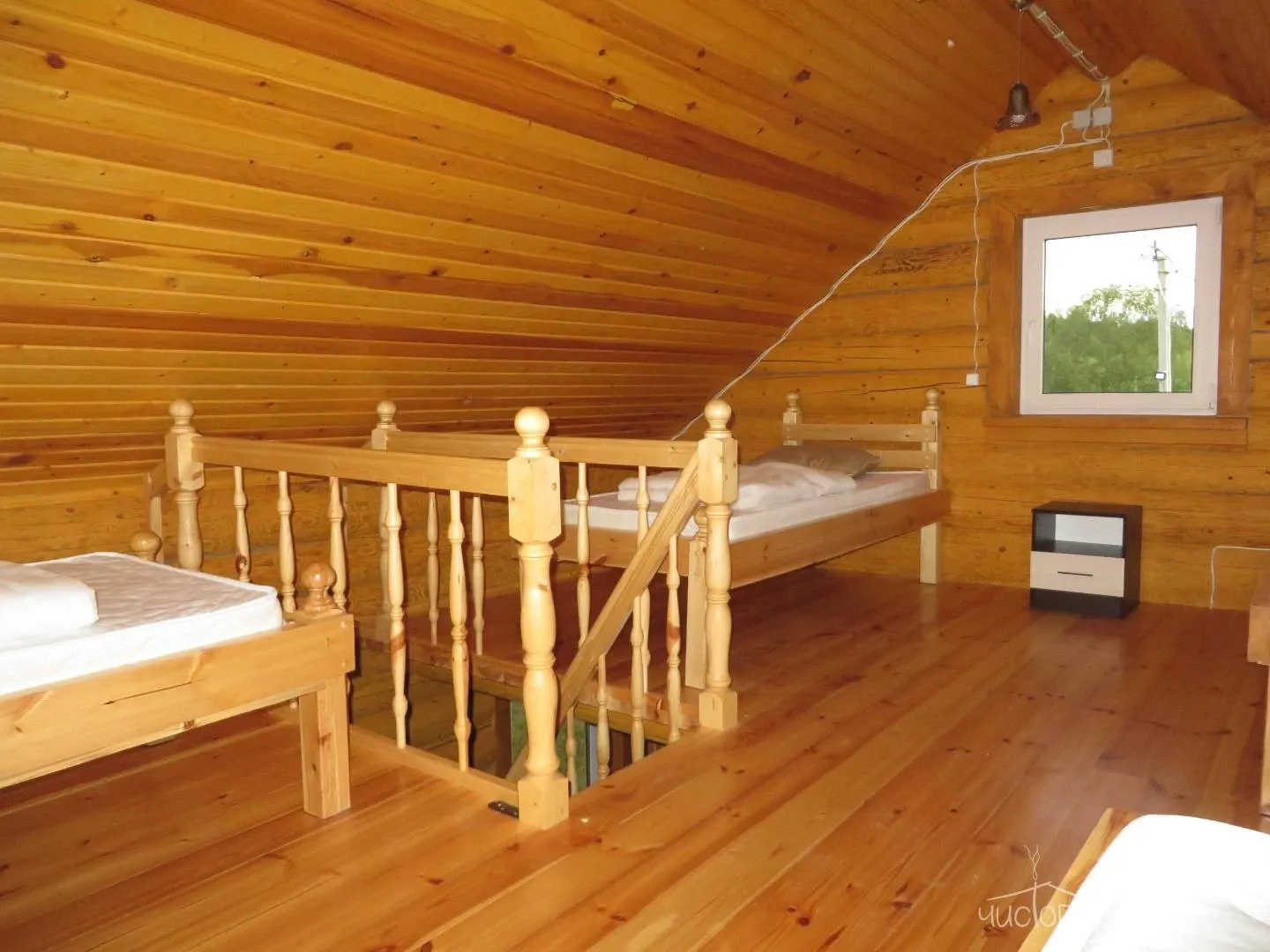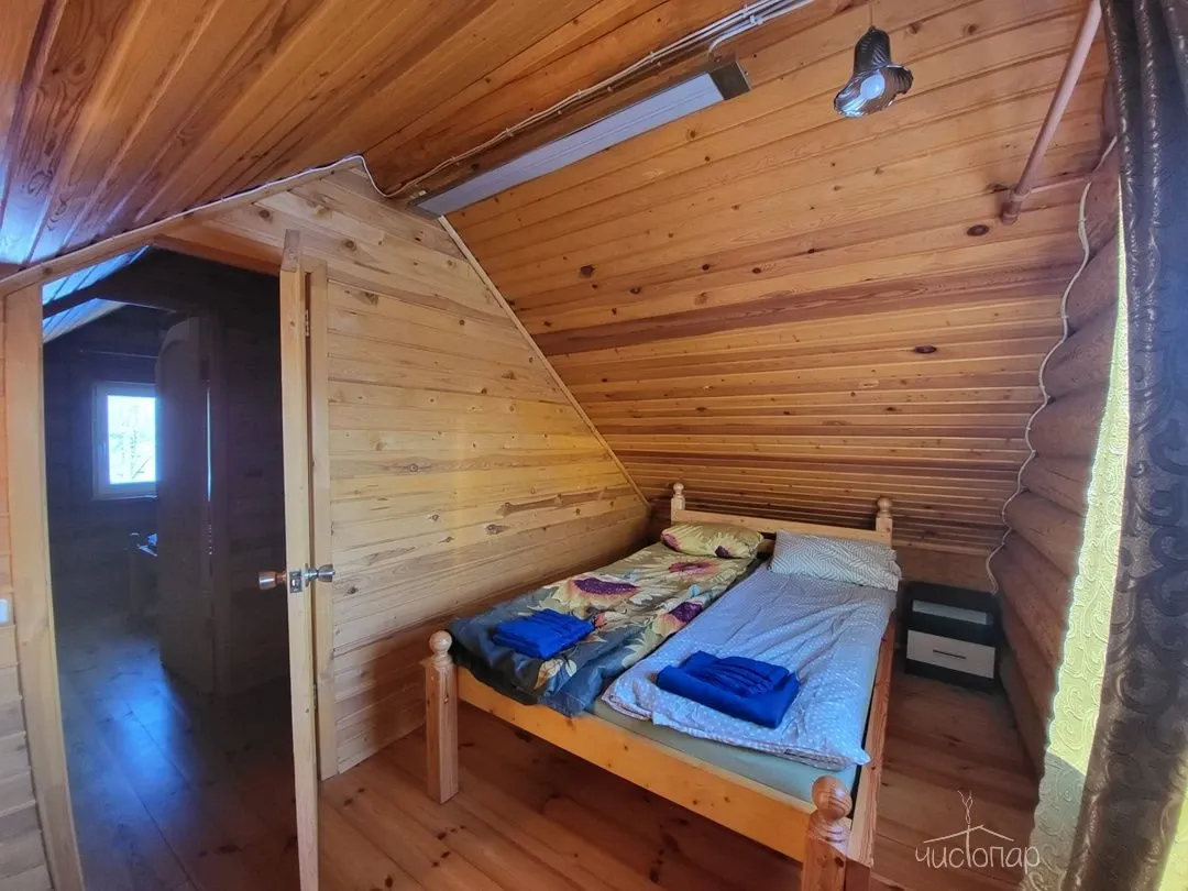 Дом на 4 человек имеет 2 односпальные кровати на втором этаже (пространство не разделено) и евротахта для 2-х - на первом этаже. Стоимость: