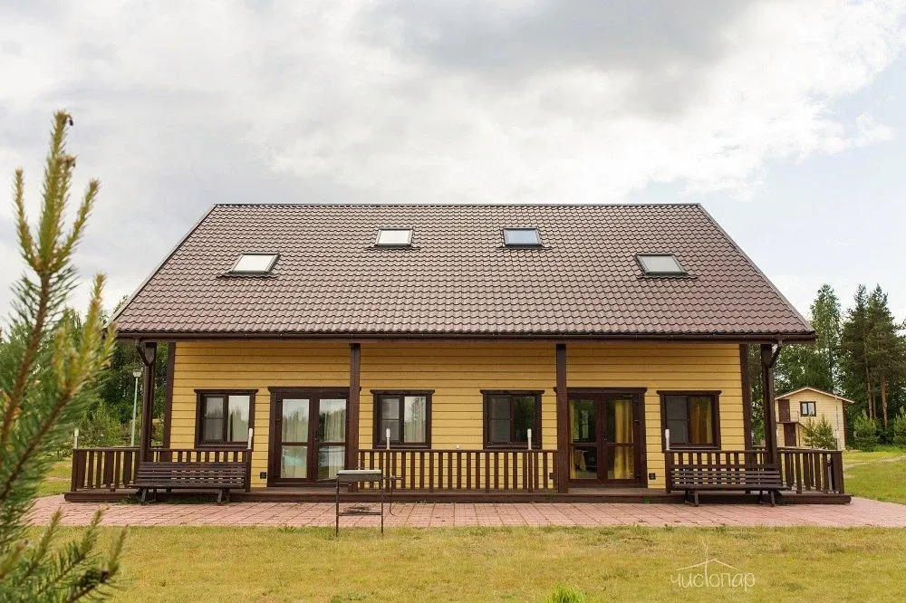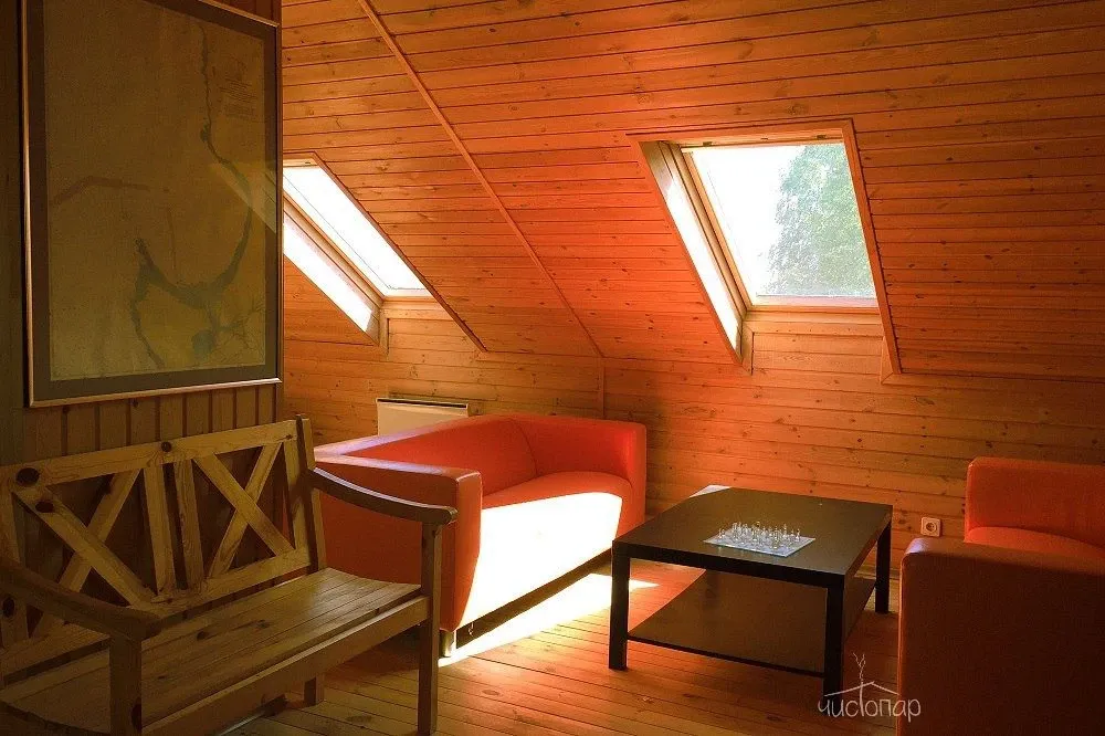 На базе расположены светлые, просторные коттеджи на 3 и на 4 спальни,