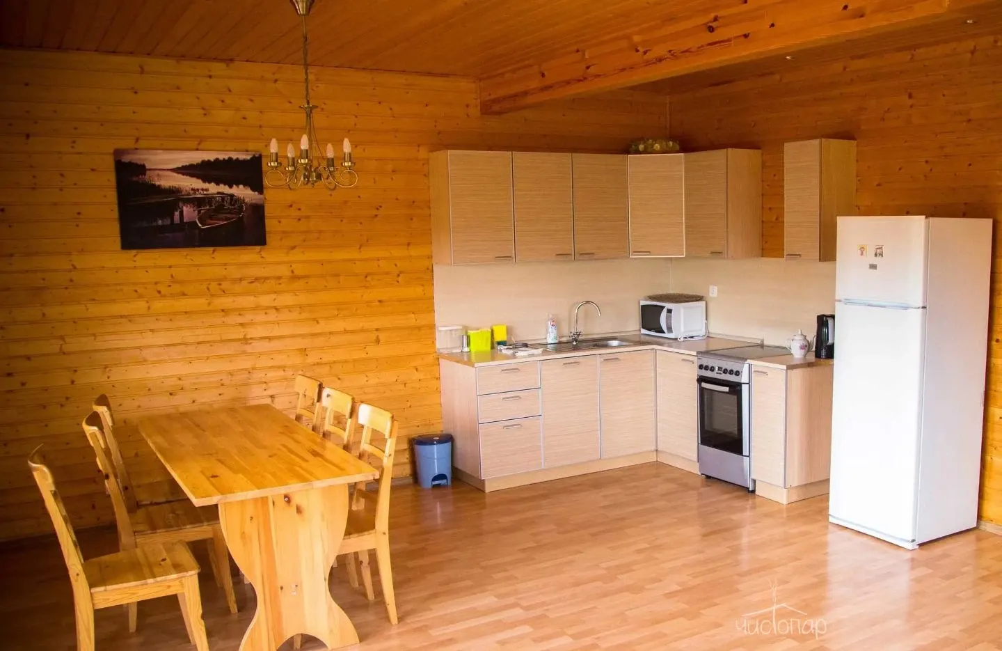 В каждом доме полностью оборудована кухня-гостиная. Комплект посуды на 6-8 человек, салатницы, кастрюли, сковороды, противни для духового шкафа и т.д.